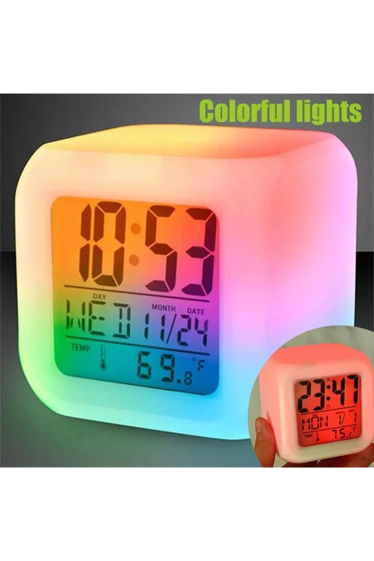 Renk Değiştiren Alarmlı Dijital Küp Masa Saati
