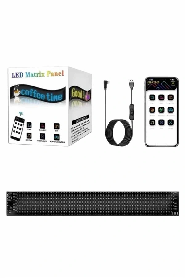Göz alıcı ışıkları ve kişiselleştirilebilir yapısıyla dikkat çeken bu RGB LED matris ekran, hem ev içi dekorasyonlarda hem de ticari alanlarda dikkat çekici bir iletişim aracı olarak öne çıkıyor. LED dizilimiyle donatılan bu ürün, 8 karaktere kadar metin yazılmasına olanak tanır. RGB LED çipleri sayesinde yayılan ışıklar sadece canlı ve parlak olmakla kalmaz, aynı zamanda düşük enerji tüketimiyle de çevre dostu bir kullanım sunar. Renk geçişleri ve ışık yoğunluğu oldukça güçlü olan bu LED ekran, mesajlarınızı dikkat çekici bir biçimde yansıtmanızı sağlar.Akıllı uygulama kontrolü sayesinde LED panelinizi mobil cihazınız üzerinden kolayca yönetebilirsiniz. İster metin, ister desen ya da animasyon oluşturun; dilediğiniz tasarımı kendinize özel biçimde düzenleyebilir, parlaklık ve hız ayarlarıyla etkileyici görseller oluşturabilirsiniz. Özellikle farklı temalara uygun senaryolar için esnek kullanım sunan bu cihaz, kullanıcıya tam anlamıyla özgür bir tasarım alanı tanır.Esnek devre kartı sayesinde panel oldukça hafif ve taşınabilirdir; bükülebilir yapısıyla dilediğiniz şekilde konumlandırabilirsiniz. USB fişli tasarımı ve beraberinde gelen çift taraflı bant sayesinde araca, duvara veya vitrin yüzeylerine kolayca monte edilebilir. Düşük güç kaynakları yerine yüksek güçlü adaptörlerle kullanıldığında çok daha stabil ve güçlü bir performans sunar.IP66 su geçirmezlik teknolojisi ile donatılan LED matris, hem iç hem de dış mekânlarda güvenle kullanılabilir. Epoksi bazlı kaplama sayesinde yoğun suya karşı dayanıklıdır ve bu yapı LED ömrünü uzatarak uzun vadeli kullanım imkânı sağlar.Mağazalar, kafeler, restoranlar, barlar, konser alanları, araç içi dekorasyonlar, etkinlikler, yılbaşı süslemeleri ve daha pek çok kullanım alanına hitap eden bu panel, görsel mesajlarınızı en etkili şekilde sergilemek için mükemmel bir tercihtir.Kutu İçeriği: 1 adet RGB LED matris paneli 1 adet USB fişli kontrol ünitesi 1 adet çift taraflı yapışkan bant 1 adet kullanım kılavuzu 1 adet uzaktan kumanda (pil dahil değildir)Dikkat Edilmesi Gerekenler: Cihaza düşük güçlü USB kaynakları (örneğin bilgisayar veya TV USB portları) ile enerji sağlanmamalıdır. Ürünün yapısal bütünlüğünü korumak için ekran zorlanarak bükülmemelidir. Performans sorunlarında yüksek güçlü adaptör ile tekrar denenmesi tavsiye edilir.