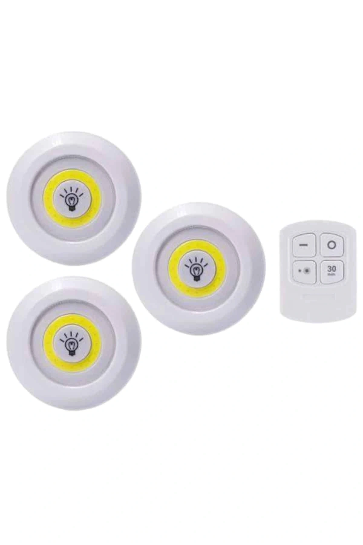 Işık rengi :Beyaz (gün ışığı)Işık pil tipi: 3 x aaa pil (dahil değildir)Uzaktan kumanda pili tipi: 2 x aaa pil (dahil değildir)Led Işık Kablosuz Uzaktan Kumandalı Dolap Içi Led Ampul Seti 3lü Set Gece Lambası Spot LambaUzaktan Kumandalı 3 Lü Ayarlanabilir Spot LED Işık Kablosuz Lamba Kumandalı Işık Ayarlanabilir 3lü Led IşıkPilli Süre Ayarlı · Çok şık ve kullanışlı modern bir üründür.Kaliteli malzemeden hoş bir görünüme sahiptir.Yapısı ile pratik kolay kullanım sunuyor. ·Temizliği de çok kolay olan sıcak görünümü ile şıklık katacakDekoratif · Estetik Ve kullanışlı · Şık tasarım · Kanserojen madde içermez · Kaliteli ham maddeden üretilmiştir.Led light with remote control set of 3 · Işık derecesini ayarlayabilirsinizYanma süresini ayarlayabilirsinizUzaktan kumanda ile kontrol edilir · Her türlü zemine kolay montaj edilir ·Güçlü led ışığa sahiptir · 3 lü set olarak gönderilirIşık pil tipi: 3 x aaa pil (dahil değildir)Uzaktan kumanda pili tipi: 2 x aaa pil (dahil değildir)Işık rengi :Beyaz (gün ışığı)Gövde malzemesi :Sert plastikAmpul ömrü: 100.000 saatKullanım Alanları: Avcılık, kamp, ev, okul, araba, otel, restoranÜrün Boyutlar: 9 cm - 2 cm