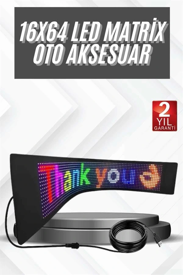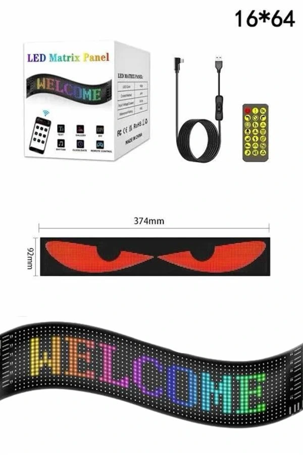 Esnek RGB LED Kayar Yazı Paneli – Parlak ve Kişiselleştirilebilir Işık Deneyimiİster dikkat çekici bir reklam mesajı oluşturun, ister dekoratif bir atmosfer yaratın; bu RGB LED kayar yazı paneli, her ortamı dönüştürmek için tasarlanmıştır. boyutundaki panel, LED dizilimi sayesinde 8 karaktere kadar net ve etkileyici metinler oluşturmanıza imkân tanır. Gelişmiş LED teknolojisiyle donatılmış bu panel, zengin renk seçenekleri ve üstün parlaklığı sayesinde uzaktan dahi kolaylıkla fark edilir. Düşük enerji tüketimi ile çevre dostu ve uzun ömürlü bir çözüm sunar.RGB LED panelin en dikkat çekici özelliklerinden biri, tamamen akıllı telefon uygulamasıyla kontrol edilebilmesidir. Kullanıcı dostu arayüzü sayesinde metin, desen ve animasyonlarınızı kolaylıkla oluşturabilir, canlı renk efektleriyle özelleştirebilirsiniz. Parlaklık ve kayan hız ayarları sayesinde panel, bulunduğu ortamın dinamiklerine rahatlıkla uyum sağlar. Dilerseniz farklı temalara uygun özel mesajlar hazırlayarak etkinliklerinize renk katabilirsiniz.Panelin esnek devre yapısı sayesinde farklı yüzeylere uygulanması son derece kolaydır. Katlanabilir ve hafif yapısıyla duvarlara, camlara, panolara ya da araç içlerine kolayca entegre edilebilir. USB fişli tasarımı, powerbank, adaptör ya da bilgisayar gibi çok sayıda güç kaynağına bağlanabilmesini mümkün kılar. Paket içeriğinde bulunan çift taraflı bant sayesinde, monte işlemleri hızlı ve sorunsuz bir şekilde tamamlanabilir.Yüksek kaliteli dış kaplaması sayesinde IP66 su geçirmezlik seviyesine sahiptir. Bu özelliği ile sadece iç mekânlarda değil, belirli dış mekân koşullarında da güvenle kullanılabilir. Epoksi koruyucu tabaka, hem darbelere hem de neme karşı direnç sağlar; böylece LED’lerin ömrü uzar ve performansı korunur.İşletmelerin dikkat çekici tabelalar oluşturması, etkinliklerde yönlendirme sağlaması ya da ev kullanıcılarının kişisel ifadelerini yansıtması için ideal olan bu panel; mağazalar, restoranlar, oteller, barlar, araçlar, konser alanları ve özel kutlamalar gibi çok çeşitli alanlarda rahatlıkla kullanılabilir.Paket İçeriği:1 x RGB LED matris panel1 x USB denetleyici1 x Çift taraflı montaj bandı1 x Kullanım kılavuzu1 x Uzaktan kumanda (pil dahil değildir)Kullanım Notları:Bilgisayar ve TV gibi düşük çıkışlı USB kaynakları yerine yüksek güçlü adaptörlerle kullanılması önerilir.Paneli zorlama veya aşırı bükme, ürün ömrünü olumsuz etkileyebilir.Stabilite sorunlarında alternatif güç kaynaklarıyla yeniden denemeniz önerilir.