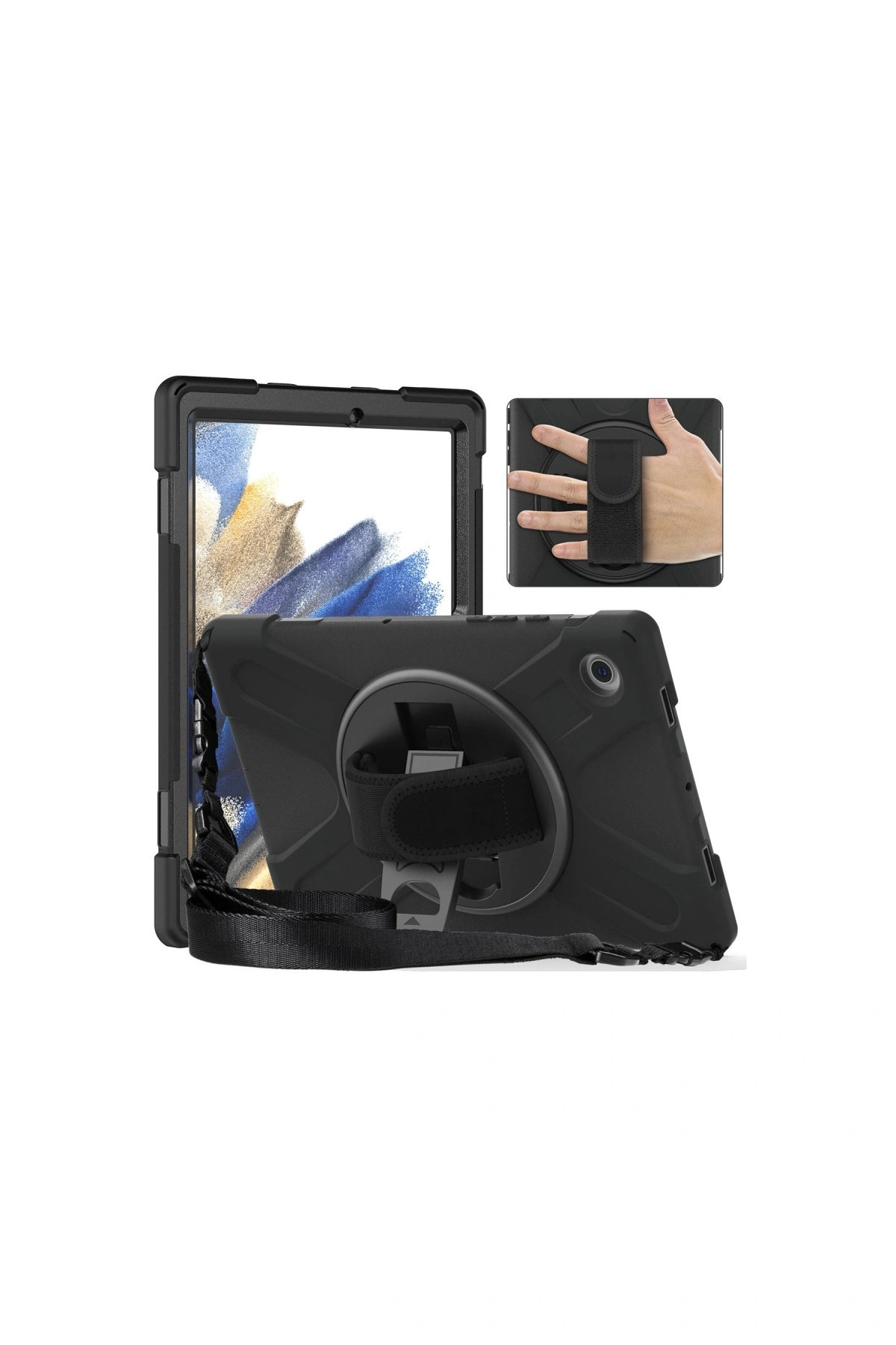 Ürün ÖzellikleriGüçlendirilmiş iç panalleri, ergonomik yapısı ile tabletinizi korumak ve kullanımını kolaylaştırmak için tasarlanmıştır.; ---- ile uyumludur.360 Derece dönebilen arka kapağı ile farklı stand duruş şekilleri seçeneği sunar.360 derece tabletinizi sarar bu sayede ekran koruyucu kullanmanıza gerek yoktur.; Kılıfı stand şeklinde yan ve dik kullanabilirsiniz.; Döner tabanı sayesinde tabletinizin istediğiniz şekilde ve yönde durmasını sağlar.; Kılıfın Tableti tutan kısmı sert plastikten yapılmıştır.; Tabletinizin elden kolay kaymasını engeller.; Cihazınızı çiziklerden, kirden ve darbelerden tamamen korur.; Kırılmaya karşı koruyucu kılıf görevi görür.; Harika kalıp kesimi sayesinde cihazınıza tam uyum sağlar.; Tabletinizi kılıfından çıkarmadan bütün tuşları kullanabilirsiniz.; Çıkarılabilir,ayarlanabilir omuz askısıAyarlanabilir el kayışıSilikon arka yüzeySert PC malzemeden üretilmiş koruyucu gövde yapısıKöşeleri kalınlaştırılmış düşme ve çarpmalara karşı dayanıklı tasarımSağlığa zararlı hammadde bulunmamaktadır.