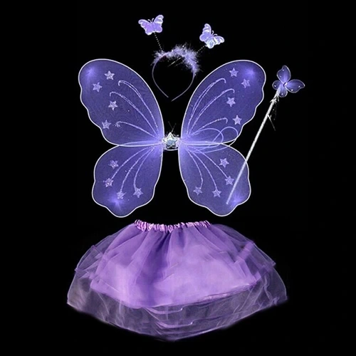 Lila Mor Kelebek Kostümü - Lila Mor Kelebek Kostüm Aksesuar Seti 4 Parça (5324)