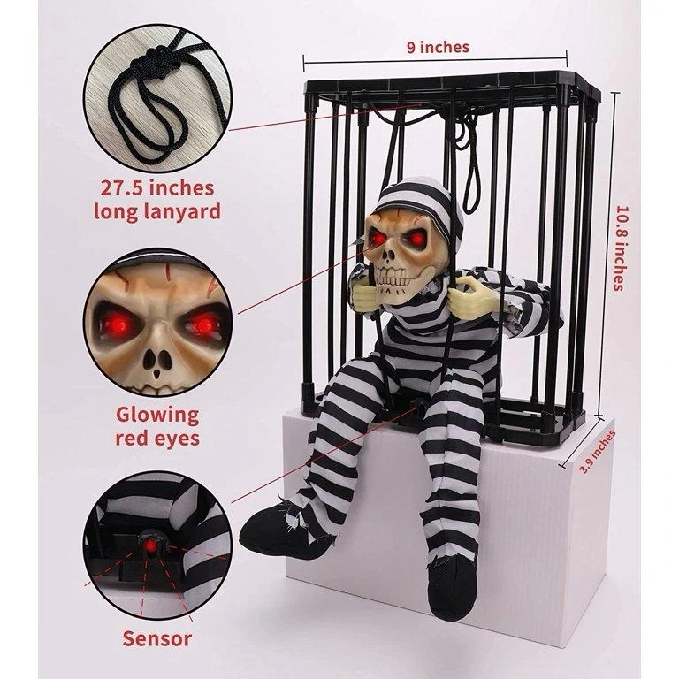 MAHKUM GÖRÜNÜMLÜ KURU KAFA İSKELETÜrün Özellikleri:Evinizi veya etkinlik alanınızı eğlenceli ve sıra dışı bir atmosferle donatmak için tasarlanmış olan bu dekoratif ürün, mahkum ve kuru kafa temalarını birleştirir. Hareketli, sesli sensörlü ve gerçekçi detaylara sahip bu iskelet dekorasyonu, özellikle korku temalı etkinliklerde dikkat çekici bir öğe olabilir.Ürün Ölçüleri:Mahkum Görünümlü İskelet 22x27 dirPaket İçeriği:1 Adet Hareketli Sesli Sensörlü Mahkum Görünümlü Kuru Kafa İskelet Dekorasyon 22x27 cm