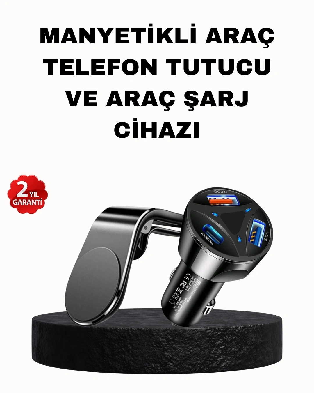 Bu 2’li araç aksesuar seti, sürüş sırasında hem güvenliği hem de konforu artırmak isteyen kullanıcılar için ideal bir çözümdür. Manyetik araç içi telefon tutucu, güçlü mıknatıs yapısı sayesinde telefonunuzu güvenli şekilde sabitler. Minimalist ve şık tasarımı, araç içi dekorla uyum sağlar. 360° döner mekanizması sayesinde telefonunuzu istediğiniz açıya ayarlayabilir, navigasyon kullanımını daha rahat ve güvenli hale getirebilirsiniz. Set içerisinde yer alan Quick Charge 3.0 destekli araç şarj adaptörü ise 55W toplam çıkış gücü ile aynı anda birden fazla cihazı hızlı ve güvenli şekilde şarj etmenizi sağlar. Akıllı IC teknolojisi sayesinde cihazınızı tanır ve ideal güçte şarj sunar. Günlük kullanım ve uzun yolculuklar için pratik bir settir.