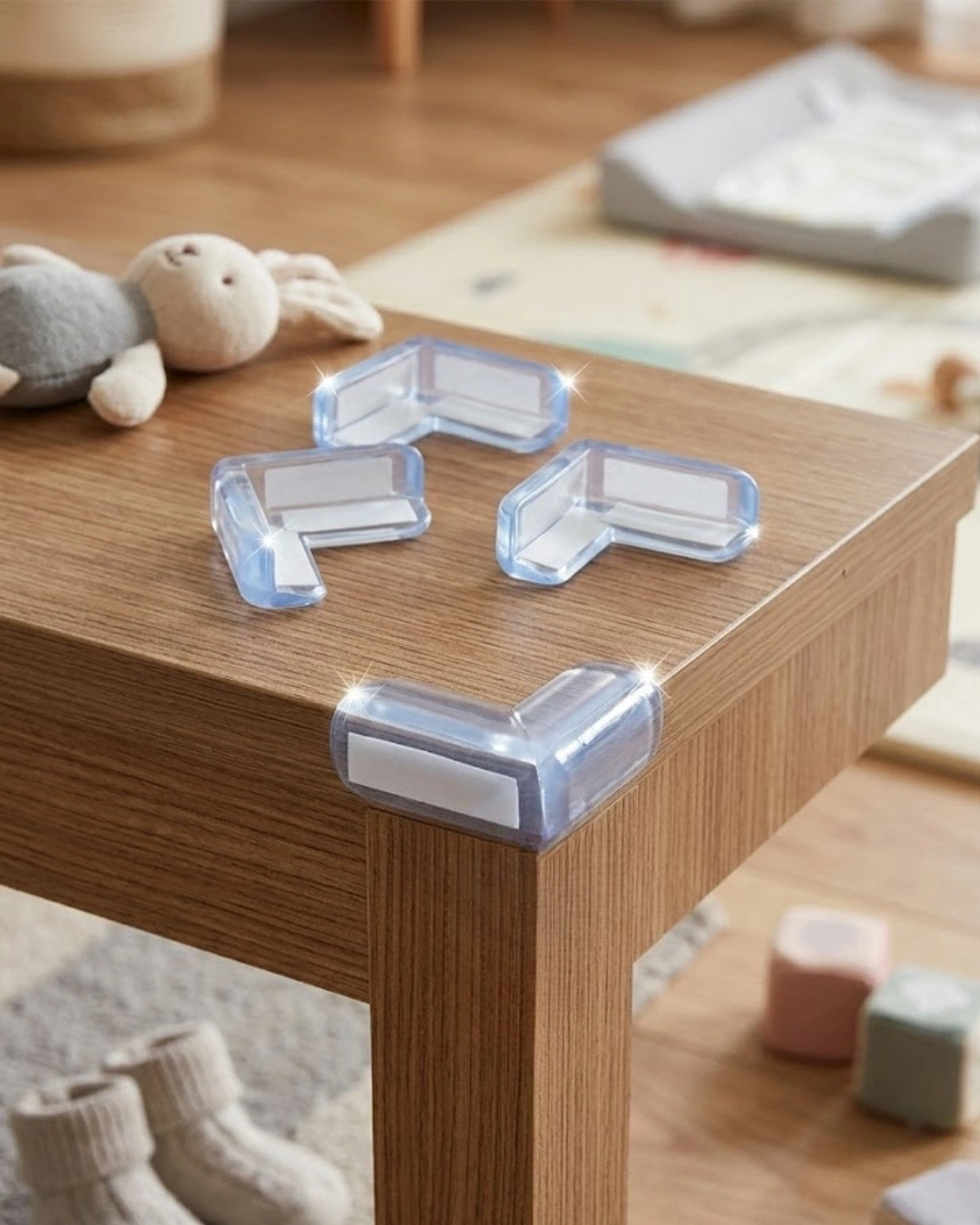 Masa köşe koruyucu seti, çocukların ev içerisinde mobilya köşelerine çarpmaları sonucu oluşabilecek kazaları önlemeye yardımcı olan pratik bir güvenlik çözümüdür. Masa, sehpa, tezgah ve benzeri birçok mobilya köşesinde rahatlıkla kullanılabilir. Yumuşak ve esnek yapısı darbe etkisini azaltarak güvenli bir koruma sağlar. Şeffaf tasarımı sayesinde mobilyanın doğal görünümünü bozmaz ve dekorasyonla uyumlu bir kullanım sunar. Kurulumu oldukça kolaydır. Mobilya köşesine yerleştirilerek sabitlenebilir ve gerektiğinde çıkarılarak tekrar kullanılabilir.
