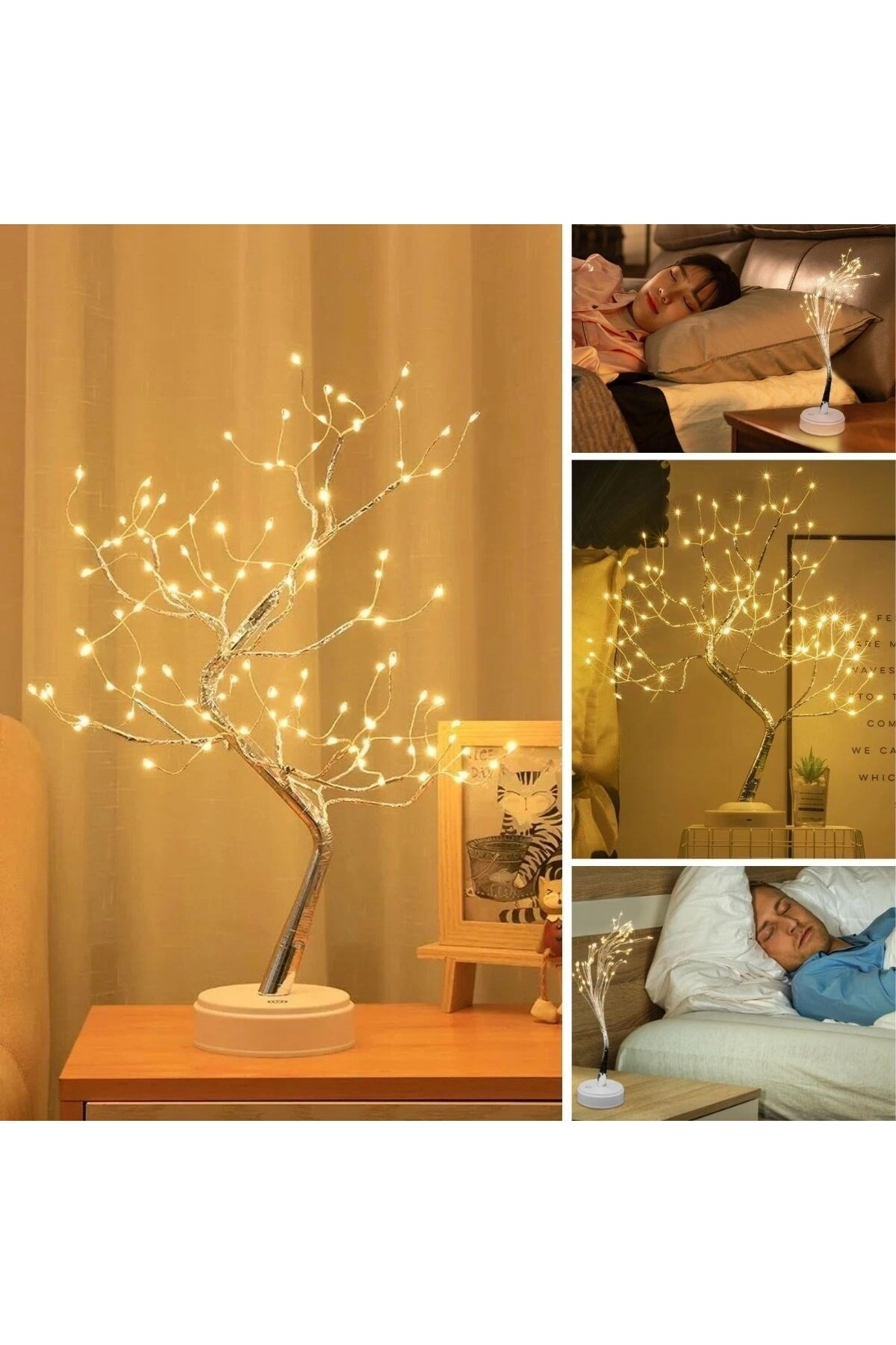 Masaüstü Peri Ağaç LED Lamba – Gün Işığı Rengi, 3 Kademeli Işık Ayarlı, Şarjlı Dekoratif Ortam Aydınlatması Yaşam alanlarınıza zarif ve sıcak bir atmosfer kazandırmak için tasarlanan Masaüstü Peri Ağaç LED Lamba, peri ağaç formundaki estetik tasarımı ve gün ışığı rengi aydınlatmasıyla dekorasyonu tamamlayan şık bir üründür.; Masaüstü kullanımına uygun kompakt yapısı sayesinde hem fonksiyonel hem de dekoratif bir çözüm sunar.; ???? Dekoratif Peri Ağaç Tasarımı Ağaç formundaki ince ve zarif LED dalları, bulunduğu ortama masalsı bir ambiyans katar.; Yatak odası, çalışma masası, salon ve raf dekorasyonlarında dikkat çekici bir görünüm oluşturur.; ???? Gün Işığı Rengi & 3 Kademeli Işık Ayarı Gün ışığı tonundaki LED aydınlatması, doğal ve göz yormayan bir ışık sağlar.; 3 kademeli ışık ayarı sayesinde ihtiyacınıza göre parlaklık seviyesini kolayca ayarlayabilirsiniz.; ???? 3 adet AA Pilli ve Kablosuz Kullanım Pil sayesinde kablo karmaşası olmadan özgürce kullanılabilir.; ???? Çok Amaçlı Kullanım Alanı Ev, ofis, kafe, butik ve vitrin dekorasyonlarında rahatlıkla kullanılabilir.; Gece lambası, ortam aydınlatması veya dekoratif masa lambası olarak idealdir.; ✅ Öne Çıkan Özellikler Gün ışığı rengi LED aydınlatma 3 kademeli parlaklık ayarı Pilli ve kablosuz kullanım Dekoratif peri ağaç tasarımı Masaüstü ve raf kullanımı için ideal Enerji tasarruflu LED teknoloji Pil mevcut değil USB Kablosu mevcut Paket Ölçüleri: 24*5*18 cm 300 gr