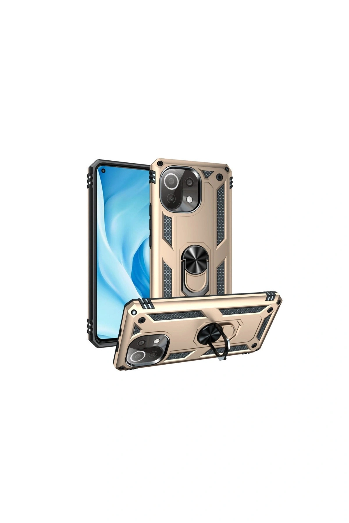 Mi 11 Lite Kılıf Sofya Yüzüklü Silikon Kapak - Gold