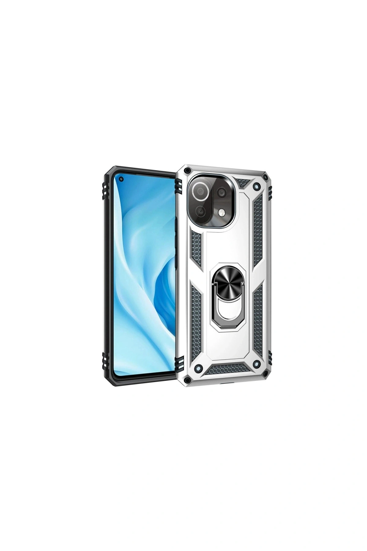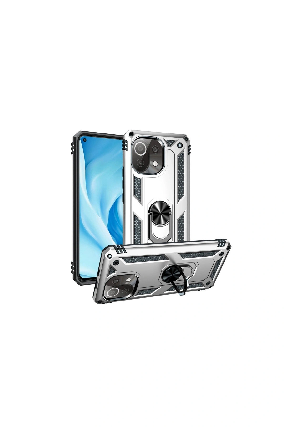 Mi 11 Lite Kılıf Sofya Yüzüklü Silikon Kapak - Gümüş
