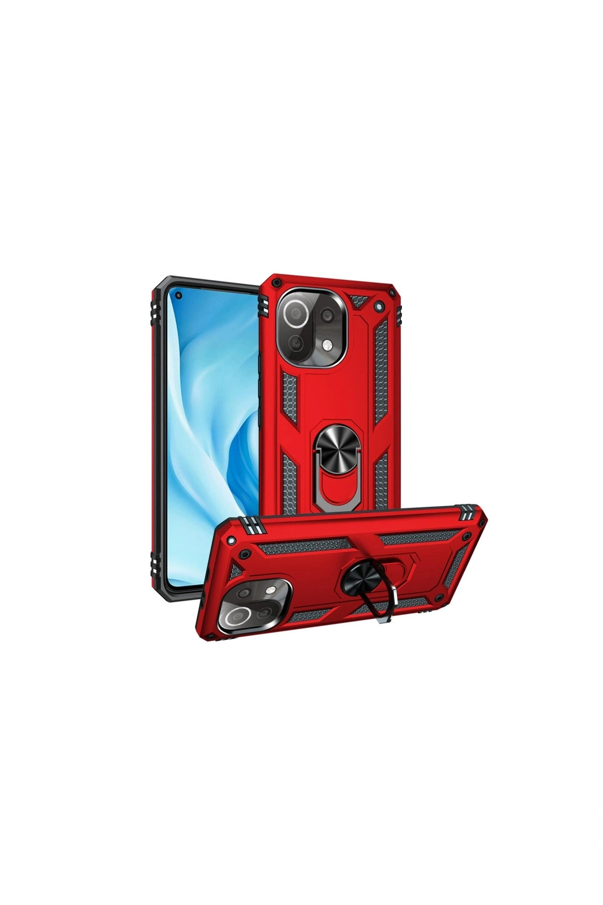 Mi 11 Lite Kılıf Sofya Yüzüklü Silikon Kapak - Kırmızı
