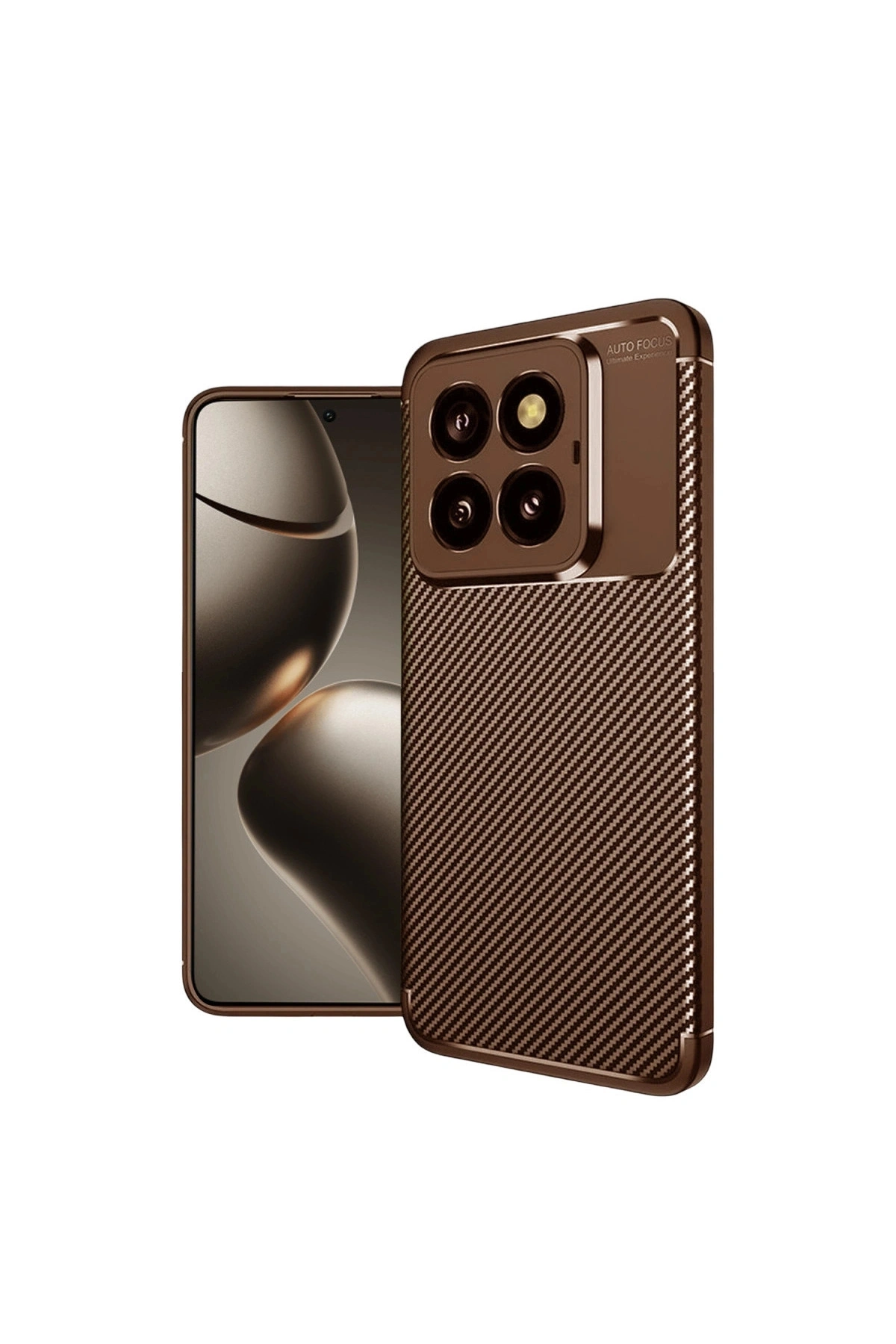 Mi 14t Pro Kılıf Auto Focus Karbon Kapak - Kahverengi