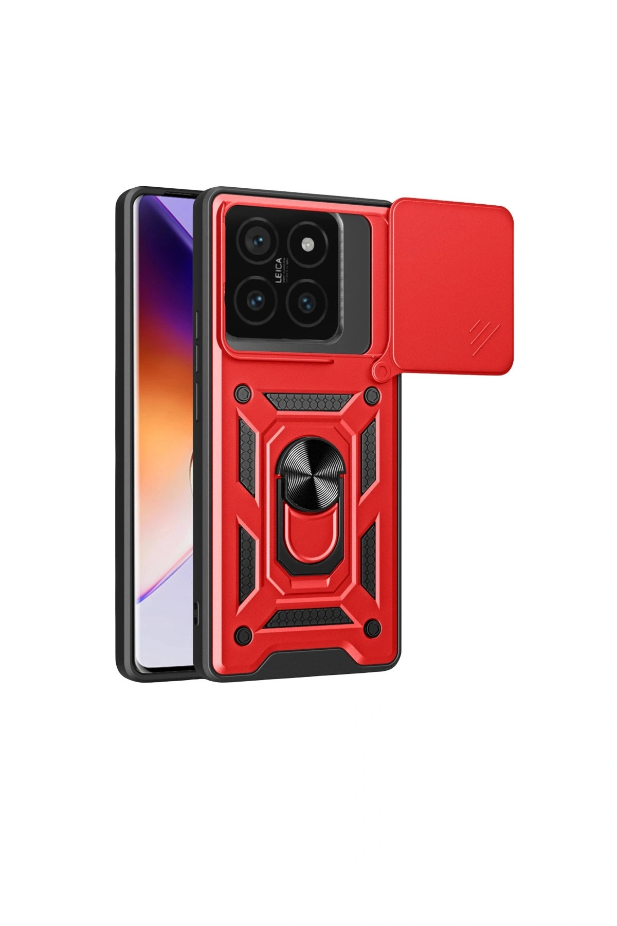 Mi 14t Pro Kılıf Pars Lens Yüzüklü Silikon - Kırmızı