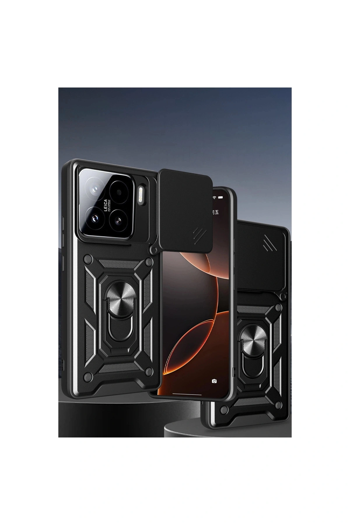 Mi 15 Pro Kılıf Pars Lens Yüzüklü Silikon - Siyah