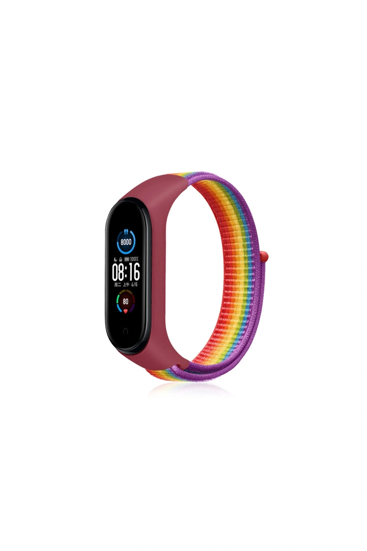 Mi Band 4 Hasırlı Cırtcırtlı Kordon (SAAT DEĞİLDİR) - Gökkuşağı