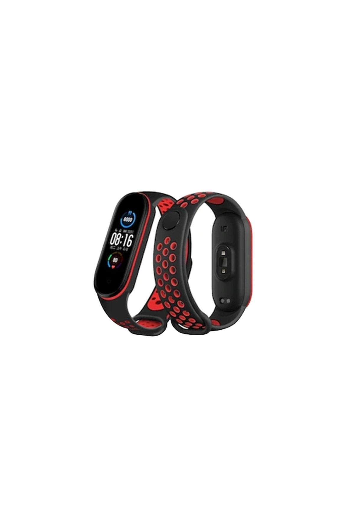 Mi Band 4 Spor Delikli Kordon (SAAT DEĞİLDİR) - Siyah-kırmızı