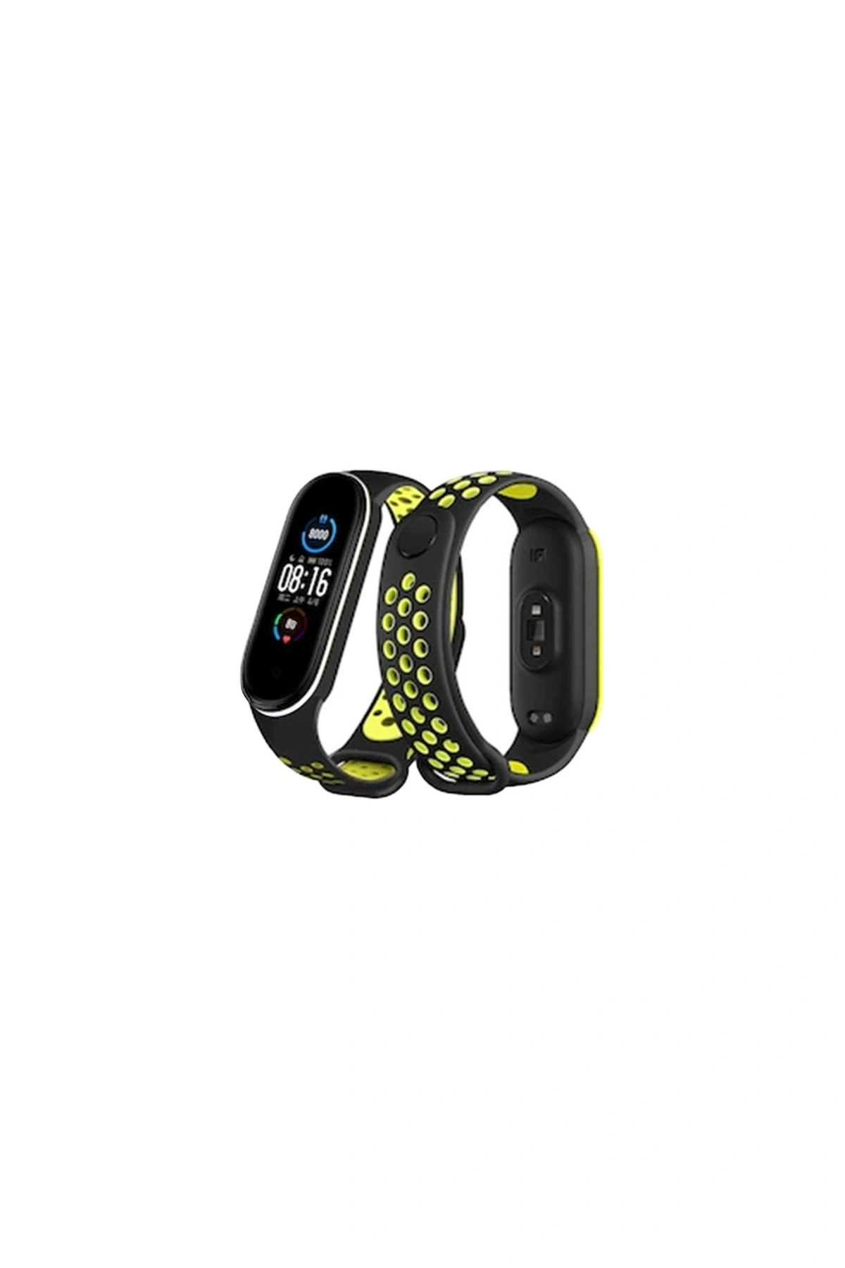 Mi Band 4 Spor Delikli Kordon (SAAT DEĞİLDİR) - Siyah-yeşil-beyaz