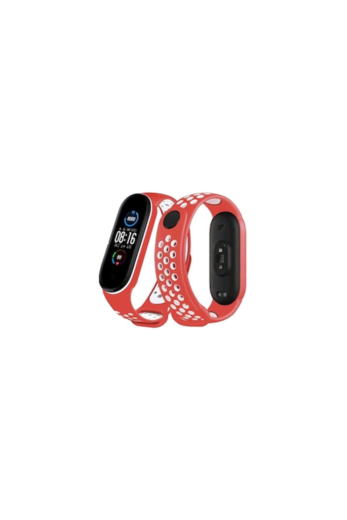 Mi Band 6 Spor Delikli Kordon (SAAT DEĞİLDİR) - Kırmızı-beyaz