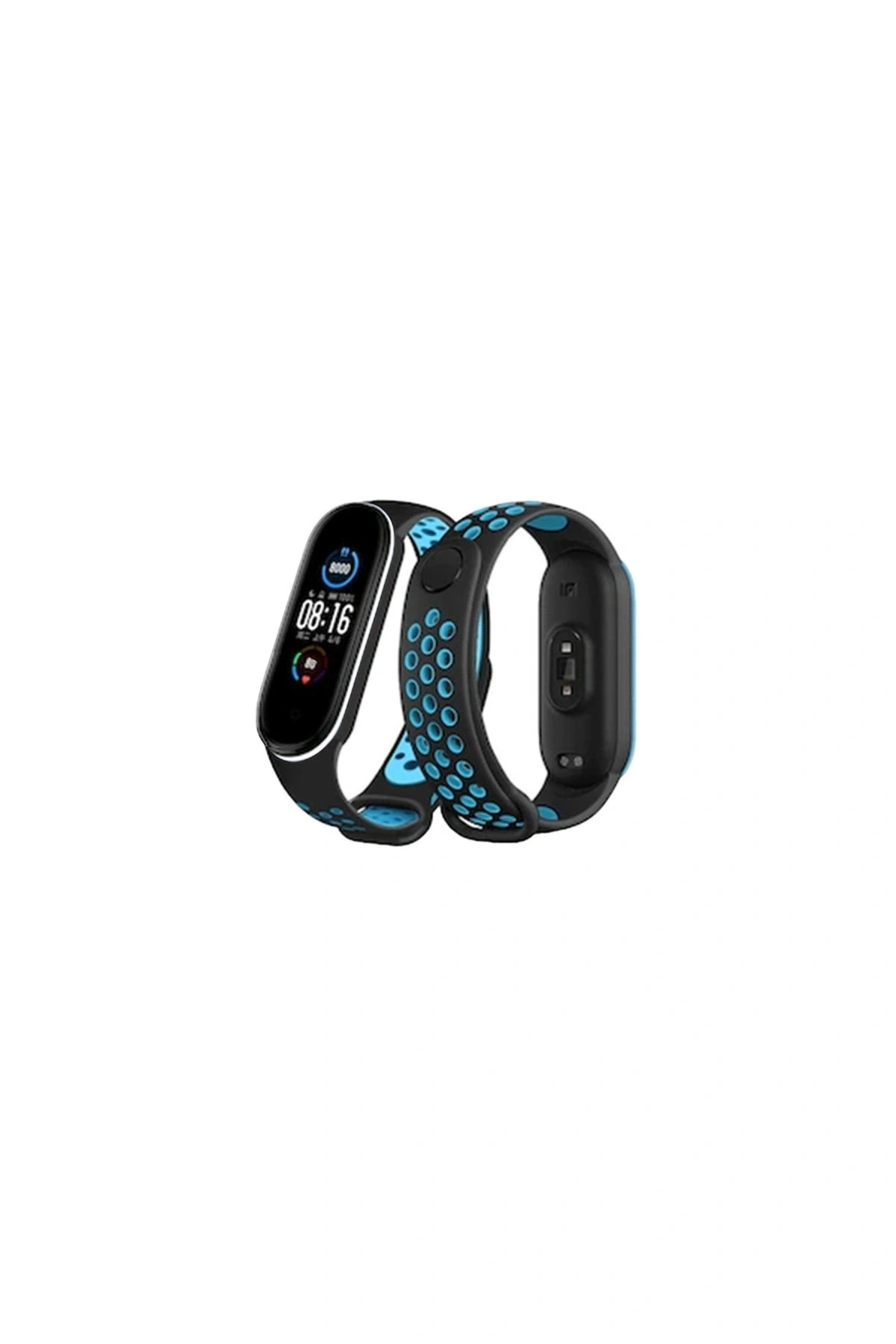 Mi Band 6 Spor Delikli Kordon (SAAT DEĞİLDİR) - Siyah-mavi-beyaz