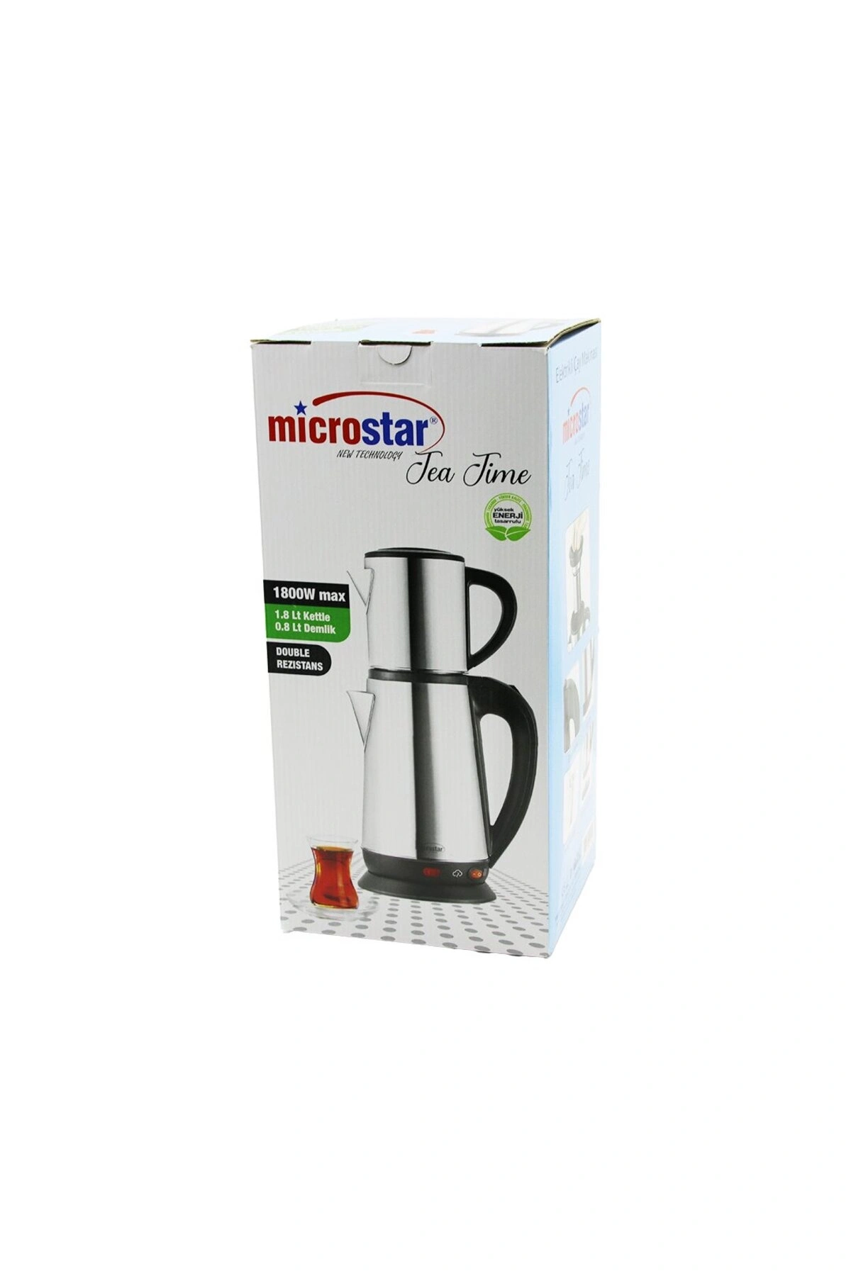 MİCROSTAR ELEKTRİKLİ ÇELİK ÇAY MAKİNESİ ÇAYCI SET 1.8LT SU ISITICI+ 0.8LT DEMLİK 1800W 360 DERECE DÖ