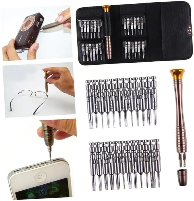 MİNİ CÜZDAN TORNAVİDA SETİMini Cüzdan Tornavida Seti: Küçük, Pratik ve Güçlü!Mini Cüzdan Tornavida Seti, hassas elektronik cihazlar ve cep telefonları gibi küçük tamiratlar için ideal bir çözümdür. Set, 24 adet tornavida ucu ve 1 adet tornavida kaleminden oluşan toplam 25 parçadan oluşmaktadır. Kompakt boyutlarıyla (10.5 cm x 6.5 cm x 2 cm) her yere kolayca taşınabilir ve her zaman elinizin altında bulundurabilirsiniz.Dayanıklı çıtçıtı sayesinde cüzdan sağlam bir şekilde kapanır ve açılmaz. Tornavida uçları, cüzdanın içinde güvenli bir şekilde sabitlenmiştir ve yerinden çıkmaz. Sadece 112 gram ağırlığında olan bu set, hafifliği ve taşınabilirliği ile kullanım kolaylığı sunar.Mini Cüzdan Tornavida Seti, profesyonel kullanıcılar için geliştirilmiş olup, hassas elektronik ürünlerin ve cep telefonlarının tamiratında en iyi yardımcınız olacak şekilde tasarlanmıştır. Ergonomik tasarımı ve yüksek kaliteli malzemeleri ile uzun ömürlü kullanım sağlar. Kompakt ve pratik bu set ile her türlü tamirat işlemini kolaylıkla gerçekleştirebilirsiniz.Paket İçeriği1 adet mini cüzdan tornavida seti