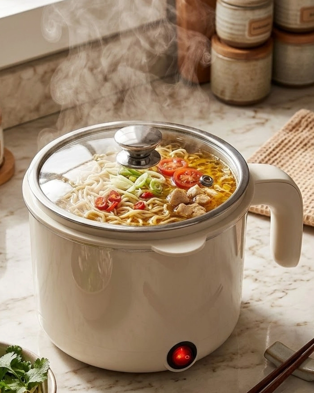Mini elektrikli pişirici, mutfakta pratik yemek hazırlamak isteyen kullanıcılar için geliştirilmiş çok fonksiyonlu bir mutfak cihazıdır. Kompakt boyutu sayesinde mutfakta fazla yer kaplamaz ve kolay taşınabilir yapısı ile farklı alanlarda rahatlıkla kullanılabilir. 1 litre kapasiteye sahip olan bu elektrikli pişirici, günlük yemek hazırlıkları için ideal bir kullanım sunar. Tek cihaz ile çorba, pilav, makarna ve sebze yemekleri hazırlayabilirsiniz. Ayrıca yumurta haşlama işlemi için de oldukça pratik bir kullanım sunar. Cihaz ile birlikte gelen buharda pişirme tepsisi sayesinde sebzeleri buharda pişirmek mümkündür. Buharda pişirme yöntemi, yiyeceklerin besin değerlerini koruyarak daha sağlıklı yemekler hazırlanmasını sağlar. Paslanmaz gizli rezistans sistemi sayesinde cihaz daha verimli şekilde çalışır. Gizli rezistans tasarımı aynı zamanda temizlik işlemini kolaylaştırır. Kullanım sonrasında cihazı rahatlıkla temizleyebilirsiniz. Temperli cam kapak sayesinde yemeklerin pişme sürecini rahat şekilde takip edebilirsiniz. Cam kapak dayanıklı yapısı sayesinde uzun süreli kullanım sunar. Işıklı açma kapama düğmesi sayesinde cihazın çalışıp çalışmadığını kolayca görebilirsiniz. Aşırı ısınma ve susuz çalışmayı önleyen emniyet sistemi ise güvenli kullanım sağlar.