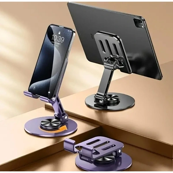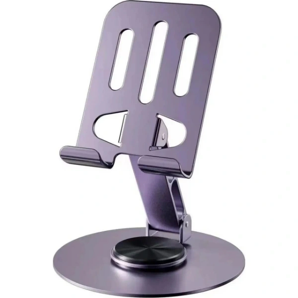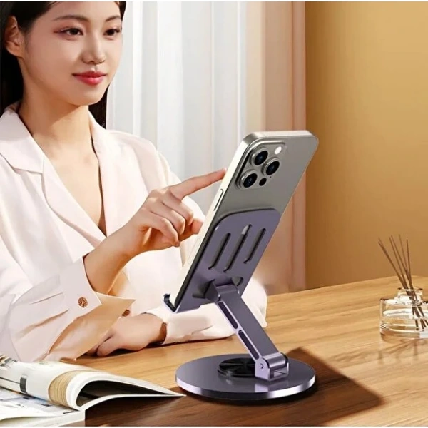 MOR 360° DÖNEBİLİR KOMPAKT MASAÜSTÜ METAL TELEFON TUTUCUÜrün ÖzellikleriMor 360° dönebilir kompakt masaüstü metal telefon tutucu, şık tasarımı ve pratik kullanımıyla masa başında konforlu bir deneyim sunar. Dayanıklı metal malzemeden üretilen bu telefon tutucu, 360° dönebilen yapısıyla cihazınızı istediğiniz açıya kolayca ayarlamanıza imkân tanır. Kaymaz silikon pedleri sayesinde telefonunuzu çizilmelere karşı korur, ayrıca sağlam tutuş sağlayarak kayma veya düşmeyi engeller. Taban kısmındaki denge sağlayıcı yüzey devrilmeyi önleyerek güvenli kullanım sunar. Kompakt yapısı sayesinde fazla yer kaplamaz ve taşınabilir özelliğiyle her ortamda kullanılabilir. Masa başında video izlemek, online görüşmeler yapmak veya oyun oynamak için ideal bir çözümdür.Paket İçeriği1 adet Mor 360° Dönebilir Kompakt Masaüstü Metal Telefon Tutucu