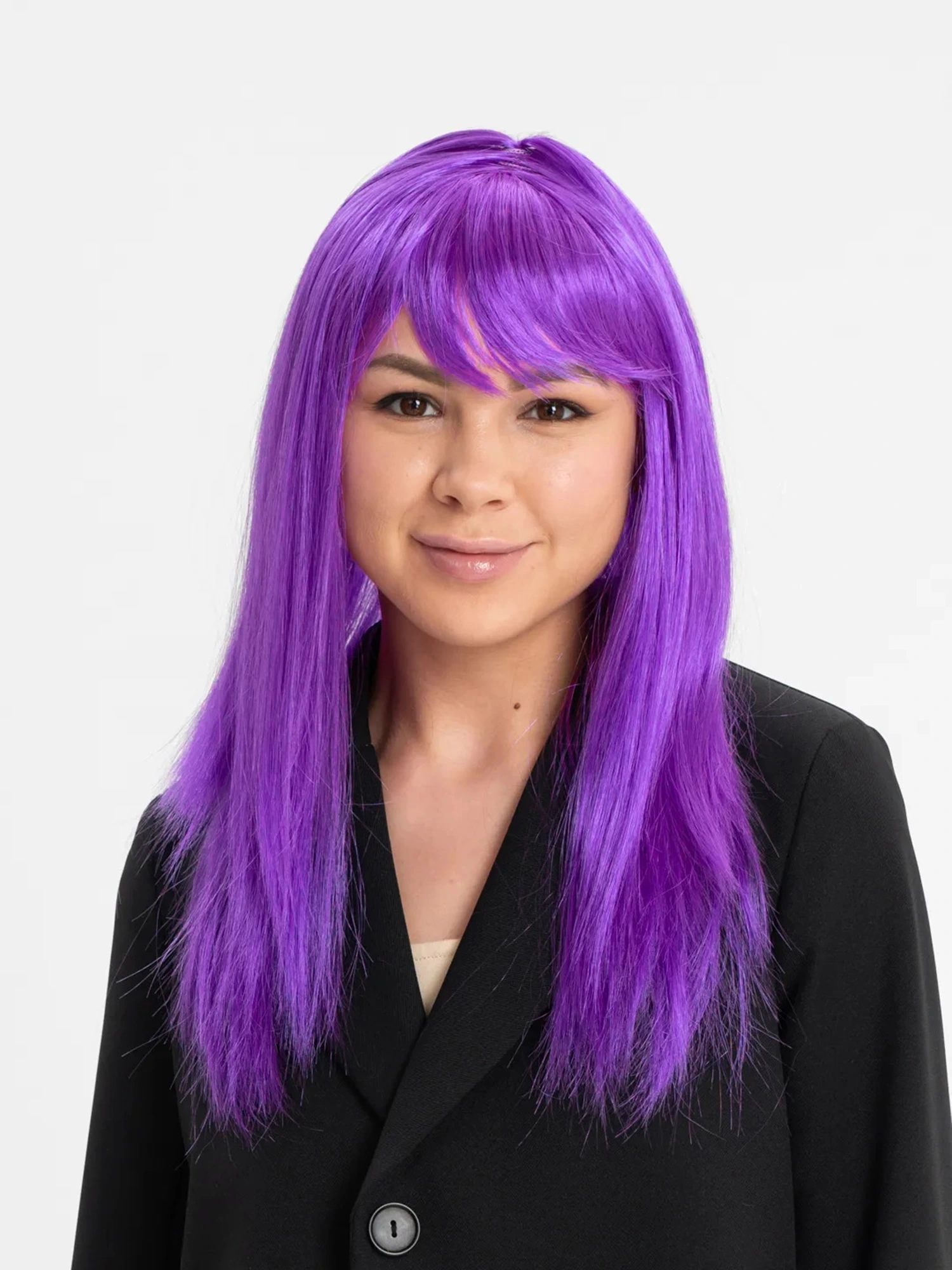 MOR DÜZ KESİM PERUK"Rengini seç, parlamaya başla!"Bu uzun, düz kesim peruğu, göz alıcı pembe tonuyla tüm dikkatleri üzerine çekmek isteyenler için tasarlandı. Hem günlük kullanımda hem de özel etkinliklerde rahatça kullanılabilen bu peruk, sentetik fiberlerden üretilmiştir ve doğal saç görünümüne sahiptir. Kabarma yapmayan, kolay taranabilir ve uzun ömürlü yapısıyla öne çıkan bu peruk, başınızda ağırlık yapmadan konforlu bir deneyim sunar. Ayarlanabilir baş bandı sayesinde her baş ölçüsüne uyum sağlar.Özellikler: • Renk: Mor • Kesim: Düz • Uzunluk: Uzun • Malzeme: Yüksek kaliteli sentetik fiber • Kullanım: Günlük ve özel etkinlikler • Bakım: Kolay taranabilir, kabarma yapmaz • Ekstra: Ayarlanabilir baş bandıKullanım Talimatları:Peruğunuzu ilk aldığınızda, nazikçe tarayarak şekil verin. Sıcak su ve hafif şampuan kullanarak yıkayın, doğal kurumaya bırakın. Peruk standında muhafaza ederek formunu koruyabilirsiniz. Aşırı ısıdan kaçının, düzleştirici veya maşa gibi aletleri kullanmayın.Paket İçeriği1 mor düz kesim peruk