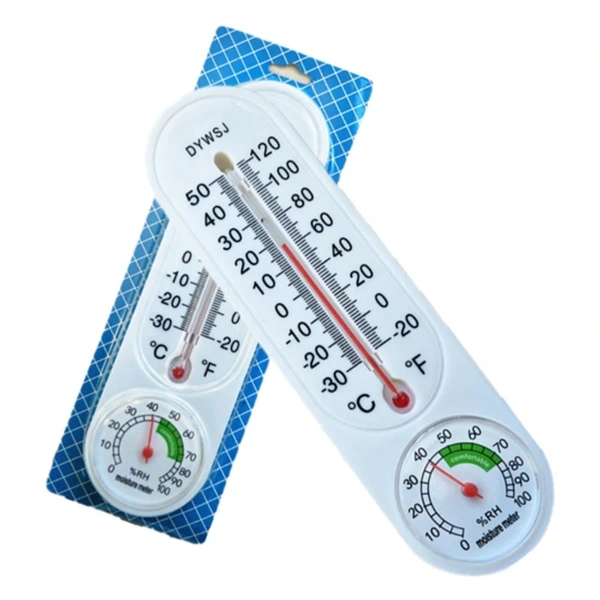 NEM ÖLÇERLİ İÇ MEKAN TERMOMETRESİÜrün ÖzellikleriNem Ölçerli İç Mekan Termometresi, -20°C ile 50°C arasındaki sıcaklıkları ölçerken, aynı zamanda Fahrenheit (°F) cinsinden de sıcaklık ölçümü yapmanıza olanak sağlar. Ayrıca, %0 ile %100 arasında nem oranını gösterir, böylece ortamın nem seviyesini takip edebilirsiniz. İç mekanlarda sıcaklık ve nem takibi yapmak için idealdir. Genellikle ev, ofis ve endüstriyel alanlar gibi yerlerde kullanılır. Bu ürün, ortam koşullarını izlemek isteyenler için pratik ve fonksiyonel bir çözümdür.Paket İçeriği1 adet Nem Ölçerli İç Mekan Termometresi