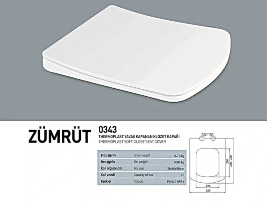 Nkp Zümrüt Kare Klozet Kapağı Beyaz Yavaş Kapanan