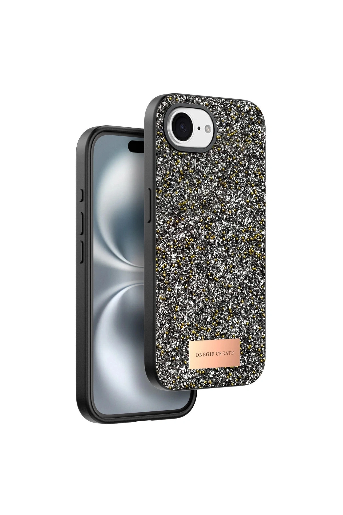 Onegif İphone 16e Bright Simli Kapak - Gümüş