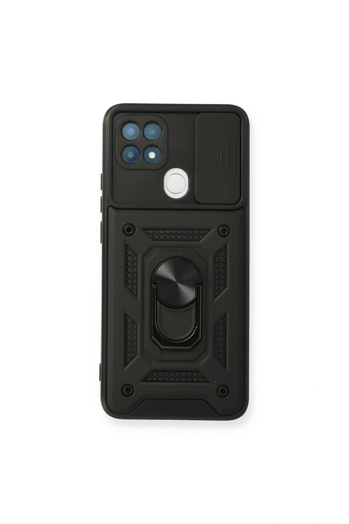 Oppo A15 Kılıf Pars Lens Yüzüklü Silikon - Siyah