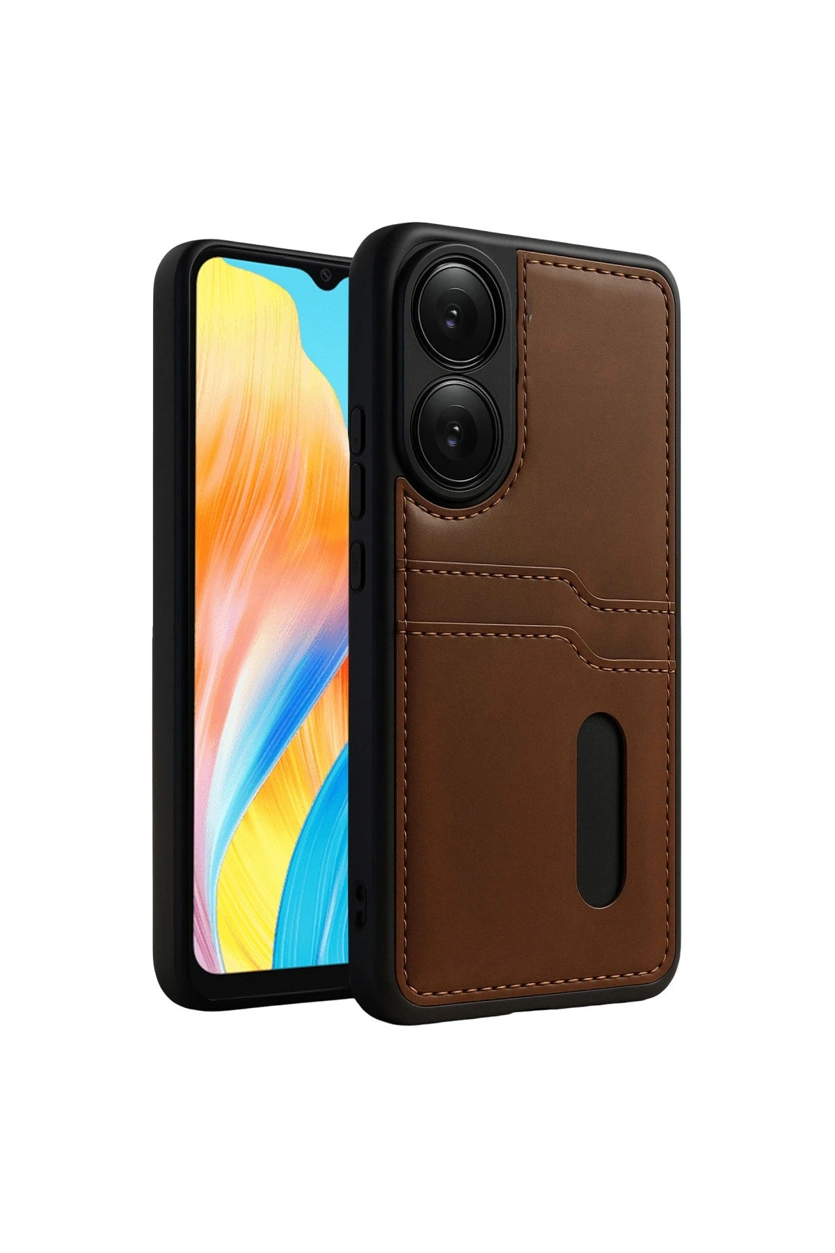 Oppo A38 Sara Kartvizitli Deri Kılıf - Taba
