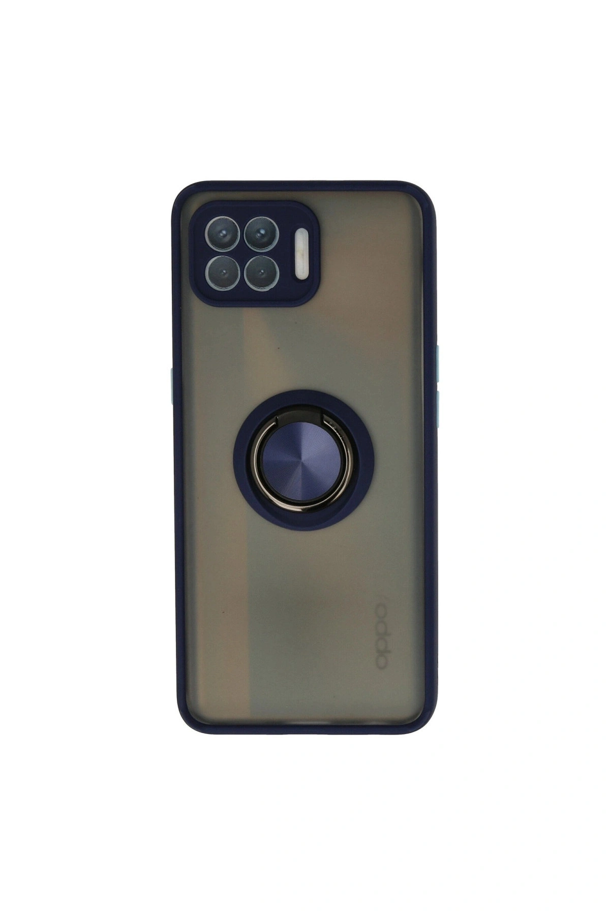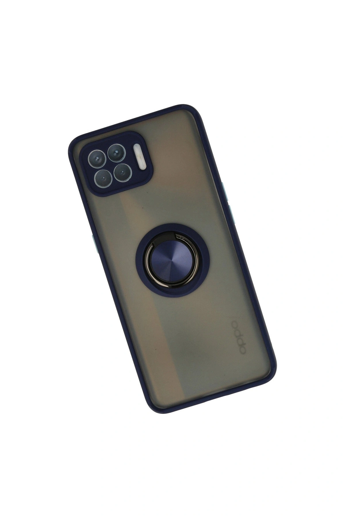 Oppo Reno 4 Lite Kılıf Montreal Yüzüklü Silikon Kapak - Lacivert