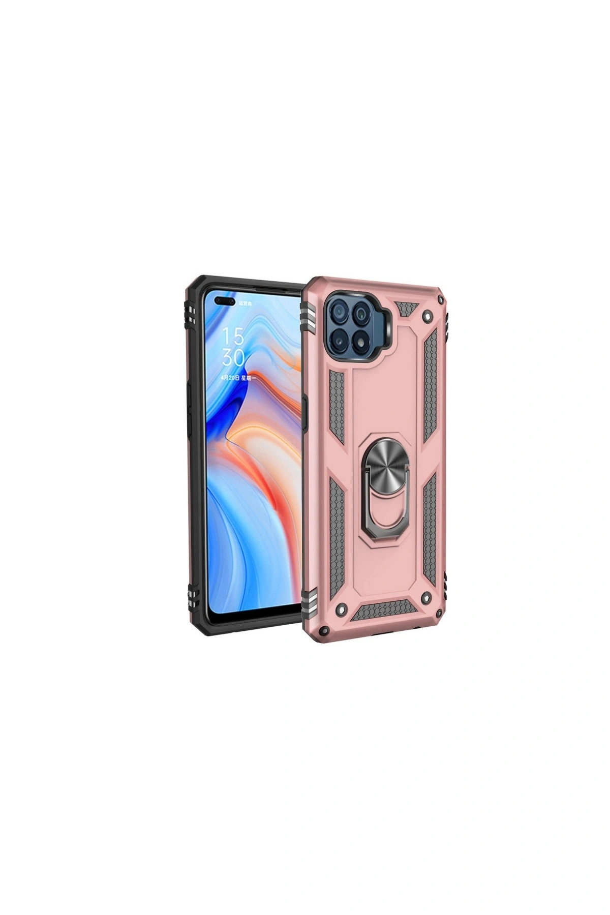 Oppo Reno 4 Lite Kılıf Sofya Yüzüklü Silikon Kapak - Rose