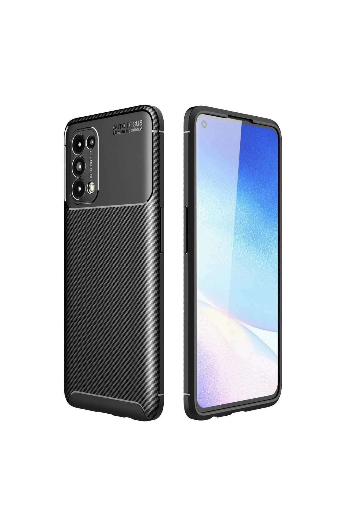 Oppo Reno 5 Kılıf Auto Focus Karbon Kapak - Siyah