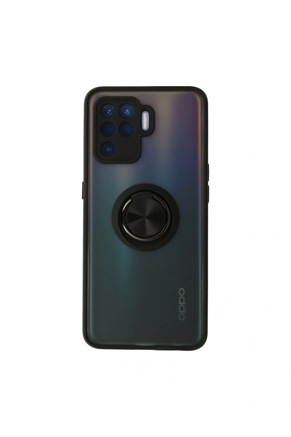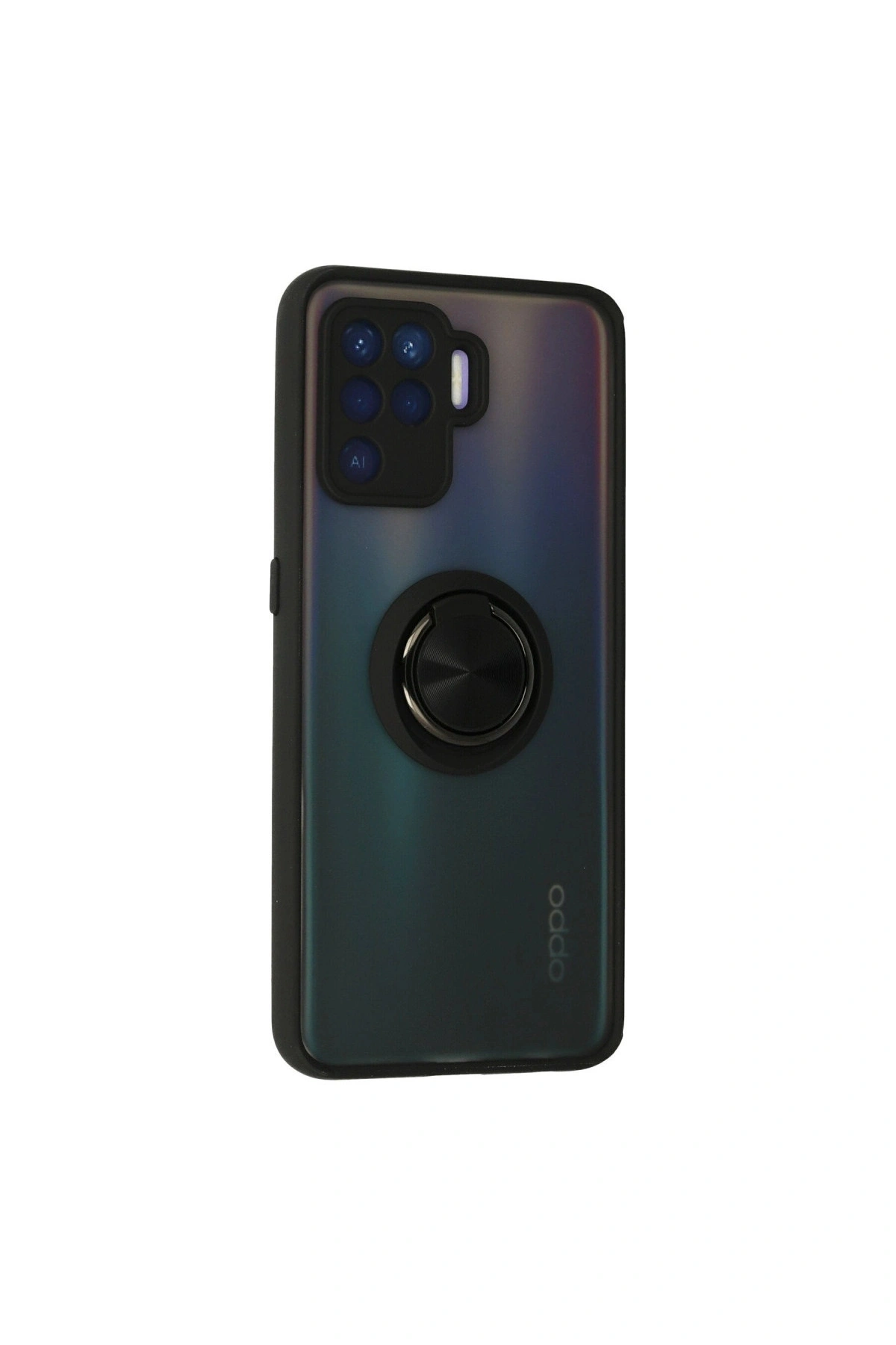 Oppo Reno 5 Lite Kılıf Montreal Yüzüklü Silikon Kapak - Siyah