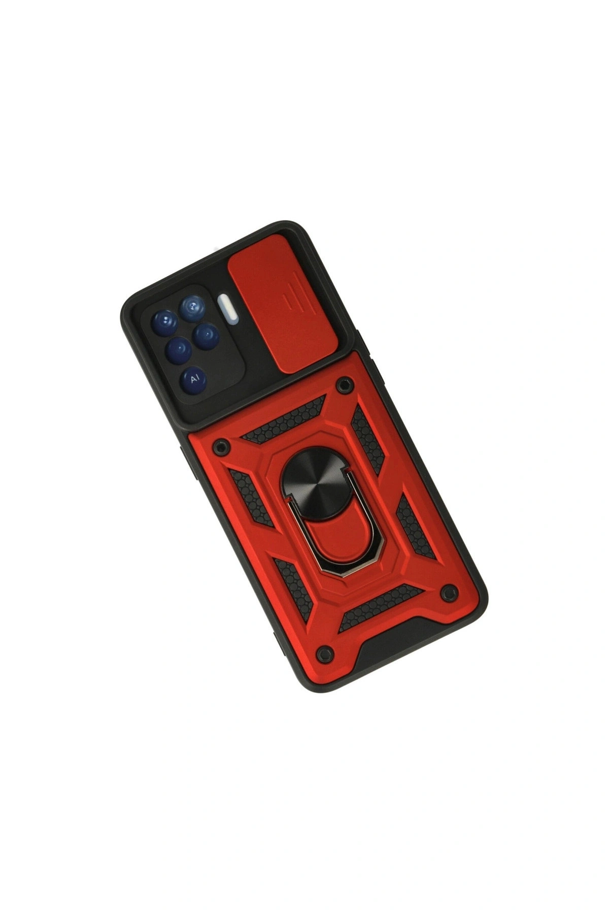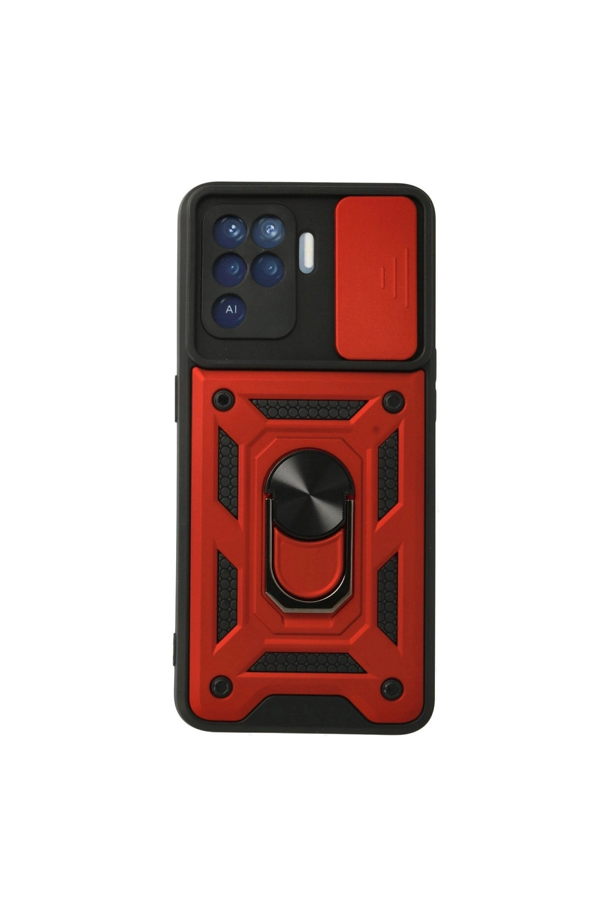 Oppo Reno 5 Lite Kılıf Pars Lens Yüzüklü Silikon - Kırmızı