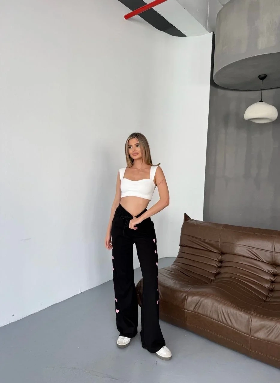 • Osy Modal Yumuşak Dokulu Kumaş Nakış işlemeli Rahat Bol Paça Eşofman Pantalon - Siyah