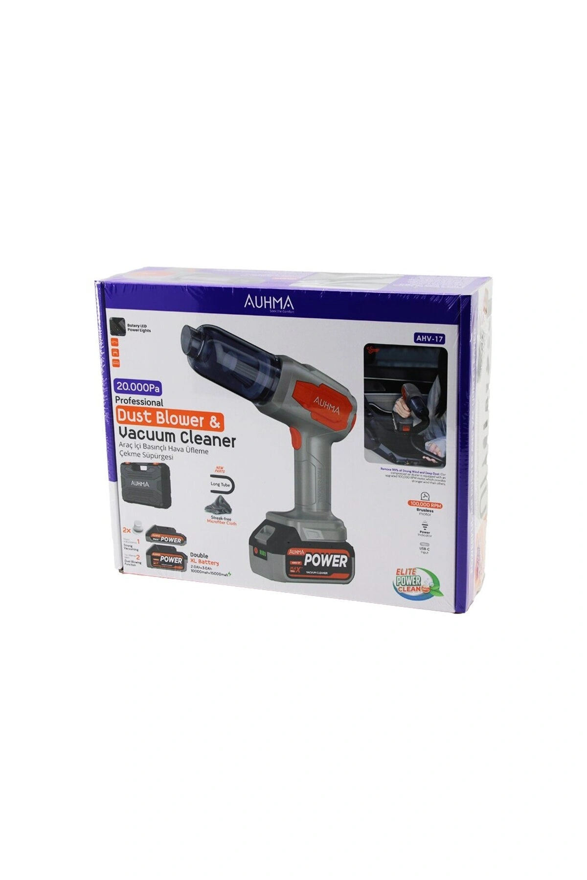 25.000mah Çift Bataryalı Auhma 20.000pa Ultra Çekim Güçlü Çantalı Araç Temizleme Süpürgesi