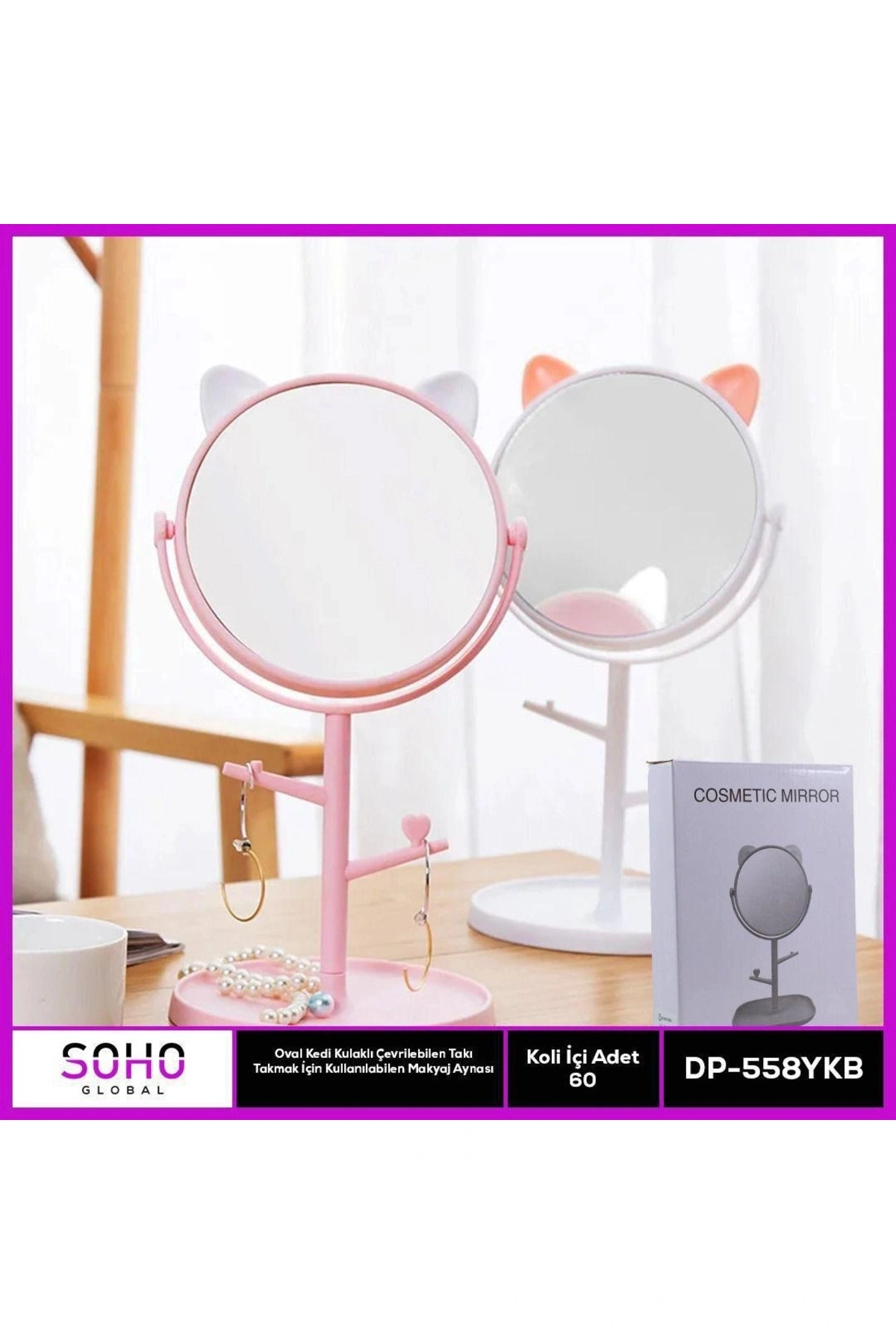 Oval Kedi Kulaklı Takı Organizer Ayna