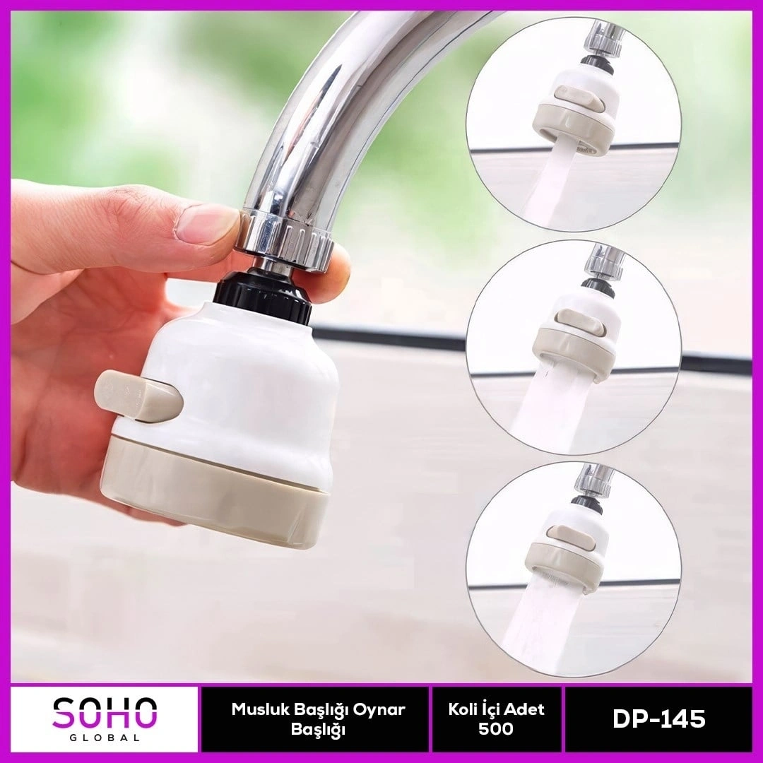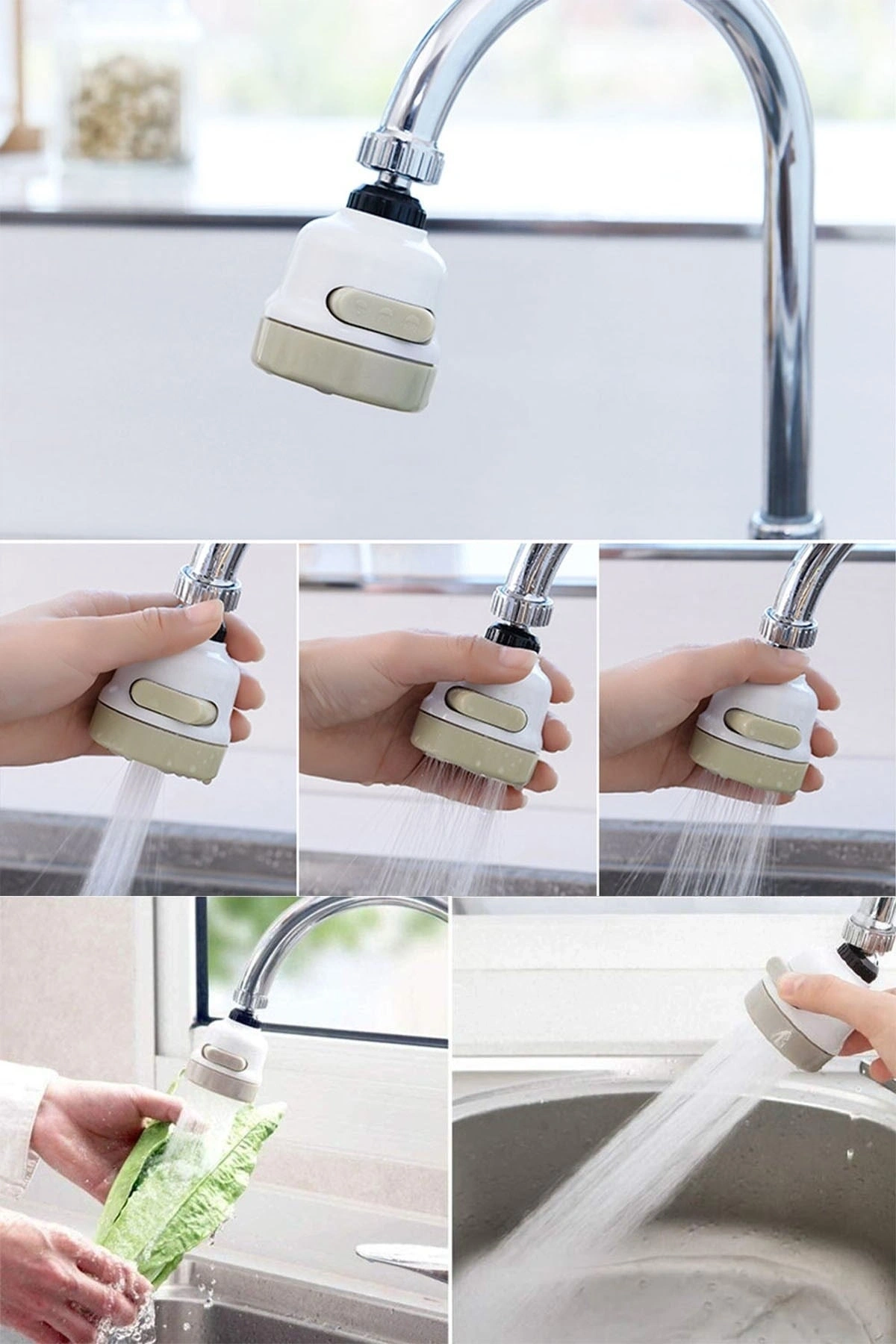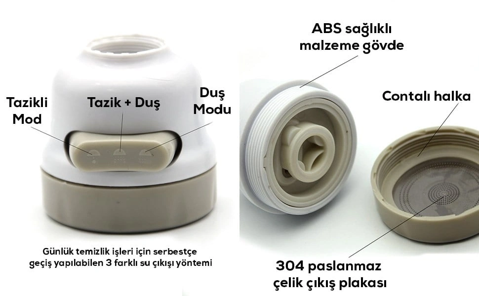Krom 3 Fonksiyonlu Mutfak Lavabo Başlığı 360 Derece Döner Musluk Ucu