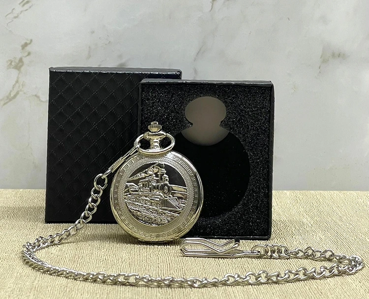 Özel Kutulu Tren Temalı Gümüş Köstekli Saat