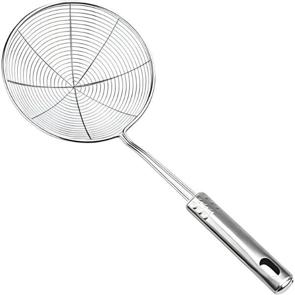 PASLANMAZ ÇELİK KEVGİRÜrün ÖzellikleriPaslanmaz çelikten üretilmiş olan bu kevgir, dayanıklı yapısı ve pratik kullanımıyla mutfakta vazgeçilmez bir yardımcıdır. 16 cm uzunluğundaki kompakt yapısıyla özellikle küçük tencerelerde ve az miktarda gıda ile yapılan kızartmalarda büyük kolaylık sağlar. Tel yapısı sayesinde kızartma yağı gibi sıvıların hızla süzülmesine olanak tanır. Ergonomik sapı el yakmaz ve güvenli bir tutuş sağlar. Paslanmaz çelik yüzeyi sayesinde hijyeniktir ve uzun ömürlü kullanım sunar. Bulaşık makinesinde yıkanabilir. Ev mutfaklarında olduğu kadar profesyonel mutfaklarda da tercih edilen bir üründür.Paket İçeriği1 Adet Paslanmaz Çelik Kevgir