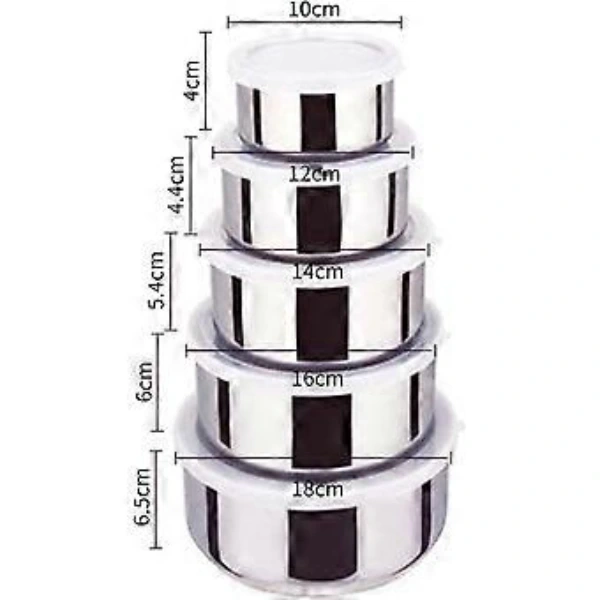 PASLANMAZ ÇELİK YEMEK SAKLAMA KABI SETİÜrün ÖzellikleriYüksek kaliteli paslanmaz çelikten üretilmiştir, uzun ömürlü kullanım sunar ve sağlıklı gıda saklama imkanı sağlar.5 farklı boyutta saklama kabı içerir (10 cm, 12 cm, 14 cm, 16 cm, 18 cm). Gıdaların tazeliğini koruyan ve hava geçirmez kapaklara sahiptir. Gıda saklama, taşıma ve buzdolabında düzen sağlamak için idealdir.Paslanmaz çelik yüzeyi sayesinde kolayca temizlenebilir, hijyenik bir kullanım sağlar. Mutfağınıza şıklık katar. Yemek hazırlığı sonrası artan gıdaların saklanması, meyve, sebze, tahıl ve bakliyat gibi gıdaların düzenli bir şekilde muhafazası, piknik, seyahat veya iş yerinde gıda taşıma için ideal bir saklama kabı setidir. Bu set, hem sağlıklı hem de pratik bir saklama çözümü sunar. Paslanmaz çelik yapısı sayesinde uzun ömürlüdür ve farklı boyut seçenekleriyle her ihtiyaca uygundur.Paket İçeriği1 adet Paslanmaz Çelik Saklama Kabı Seti.