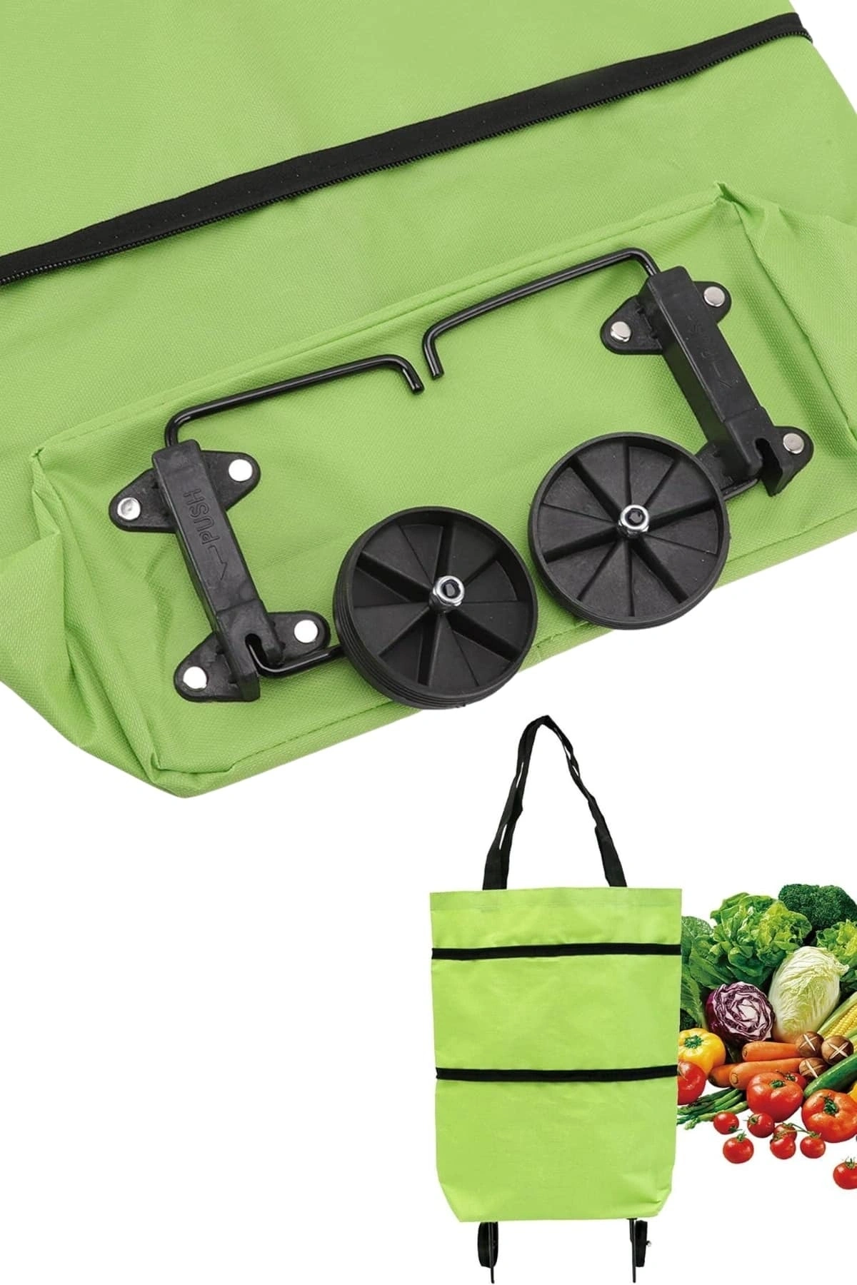Pazar çantasının alt kısmında yer alan katlanıp açılabilen 2 adet tekerlek ve destek çubukları, düz zeminlerde sabit durmasını sağlar ve hareket ettirirken büyük konfor sunar.; Ürün, şık ve modern tasarımıyla dikkat çekerken, ergonomik tutma sapı sayesinde taşıma işlemini daha da kolaylaştırır.; Kullanışlı ve fonksiyonel tasarımı ile her evde bulunması gereken bir yardımcı olan Pratik Katlanabilir Tekerlekli Pazar Arabası, alışverişlerinizde yükünüzü hafifletecek ve günlük yaşamınızı kolaylaştıracaktır.; Paket içeriğinde 1 adet pazar arabası bulunmaktadır.