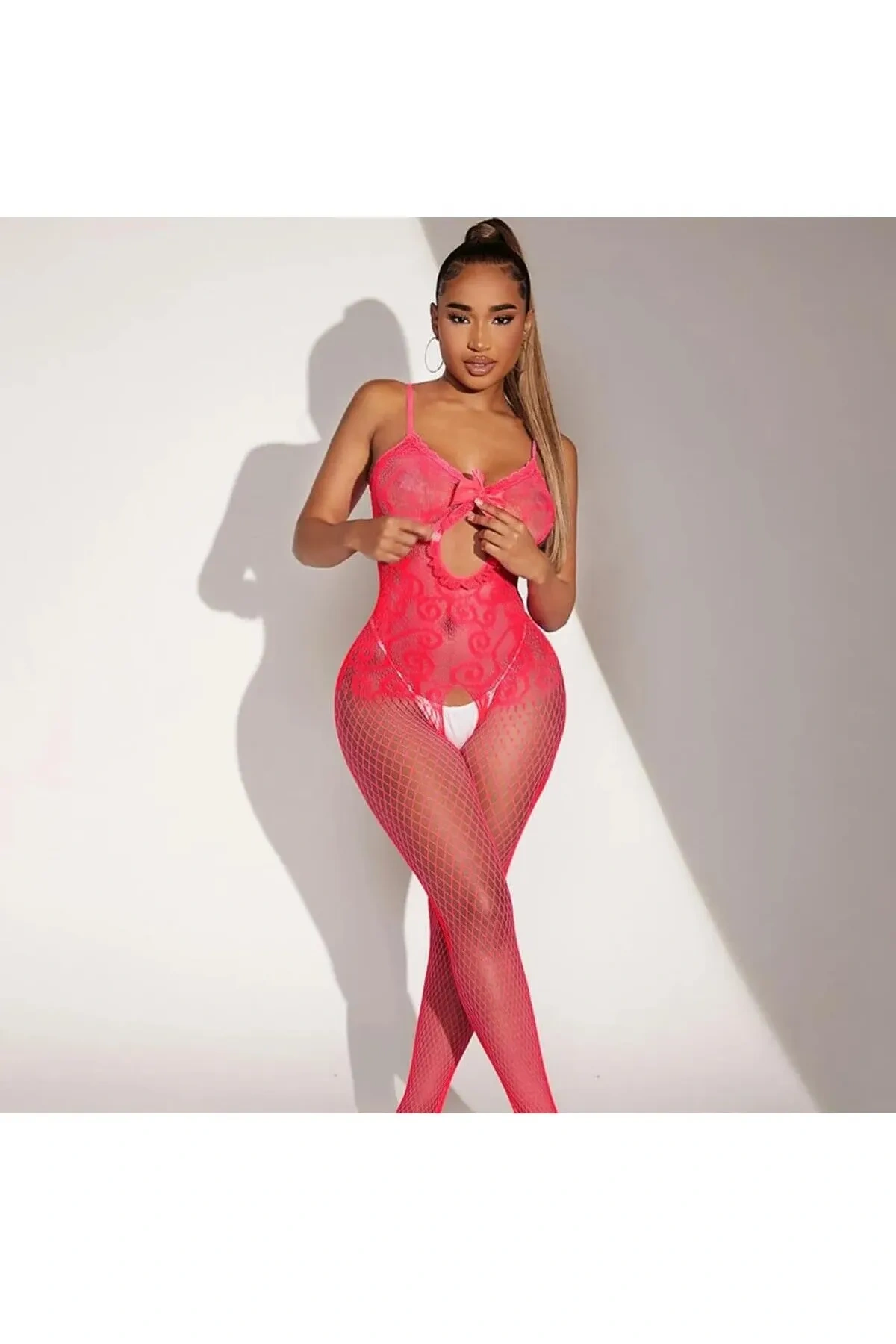 Pembe Fantezi Kadın Seksi Vücut Çorabı