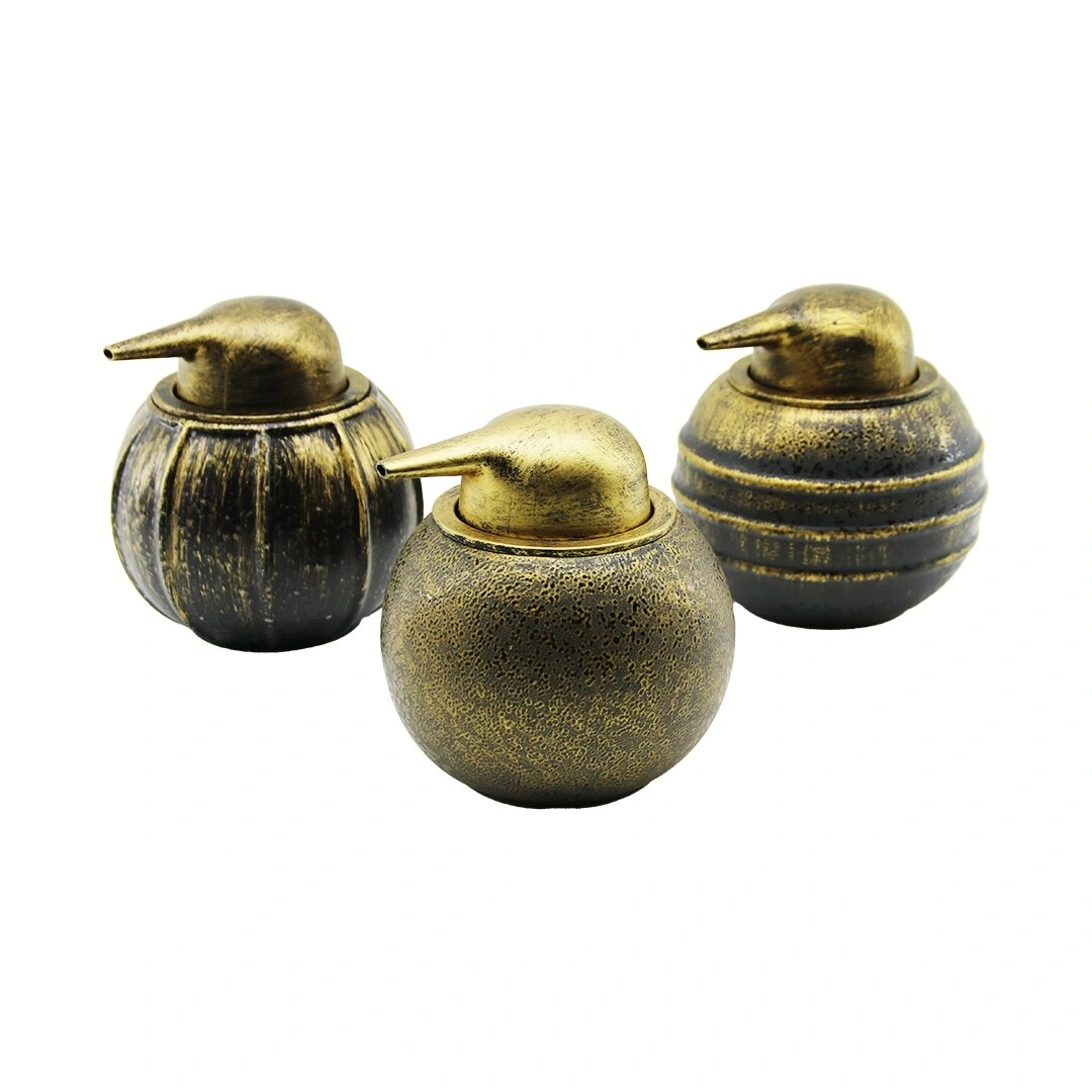 CAM YUVARLAK - BEYAZ ŞİŞE--GOLD YAPRAK DESEN SIVI SABUNLUK 350ML BRONZ PLASTİK POMPA (5324)