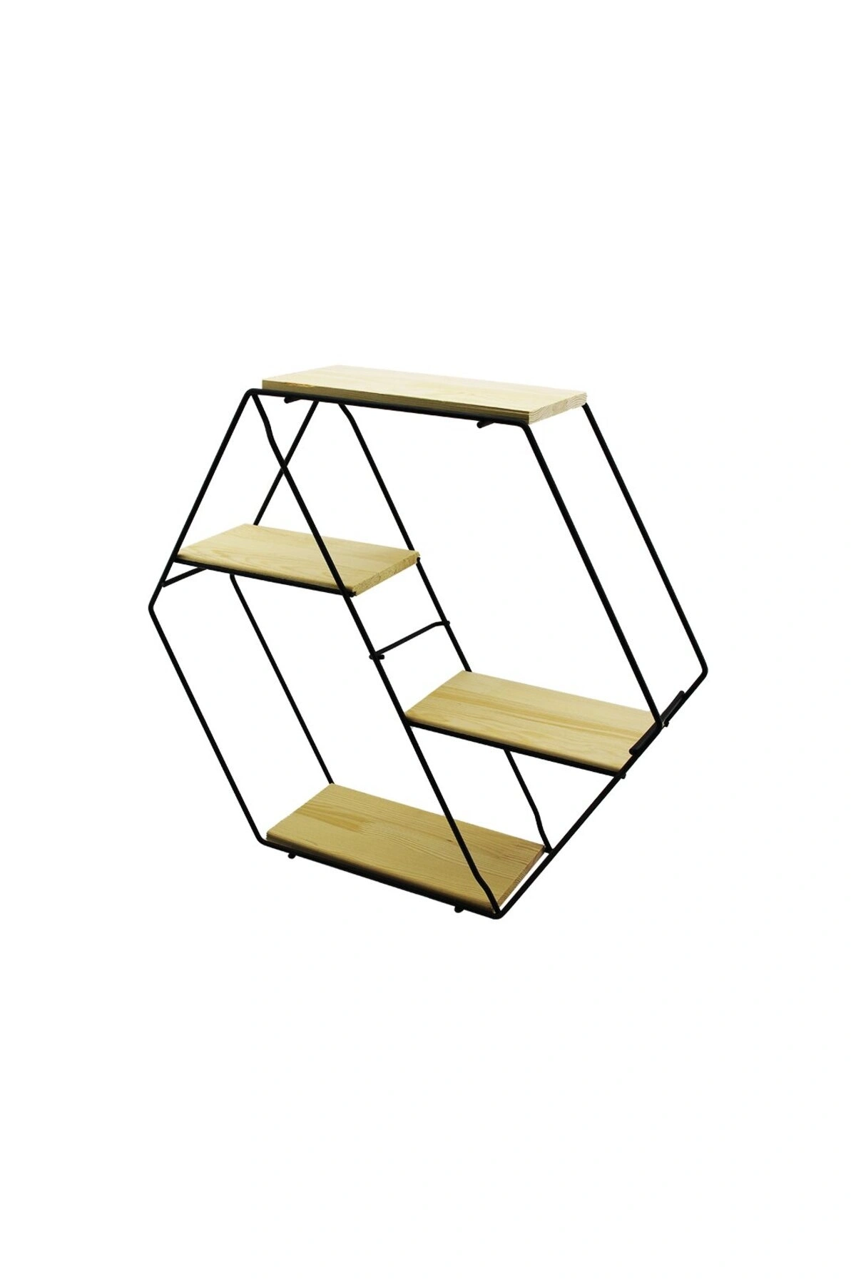 PETEK - 4 KATLI METAL İSKELETLİ - AHŞAP RAFLI DEKORATİF RAF 60 X 14 X 53 Cm (5324)
