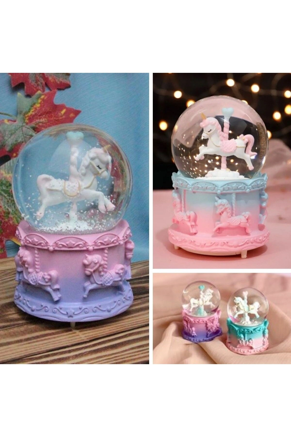 Pilli Işıklı Müzikli Kar Küresi–At Figürlü Eğlenceli Masaüstü Biblo, LED Aydınlatmalı Dekoratif Hediyelik Kar Küresi Pilli Işıklı Müzikli Kar Küresi, özgürlüğü, asaleti ve gücü simgeleyen at figürüyle yaşam alanlarınıza etkileyici ve estetik bir dokunuş kazandırır.; Küre içerisinde yer alan detaylı at figürü, süzülen kar taneleriyle birlikte büyüleyici bir görsel şölen sunarken LED aydınlatması sayesinde loş ortamlarda da dikkat çeken dekoratif bir masaüstü biblo haline gelir.; Işıklı yapısı, bulunduğu ortama sıcak ve huzurlu bir ambiyans katar.; Pilli çalışma özelliği sayesinde kabloya ihtiyaç duymadan masaüstü, komodin, raf ve vitrin gibi dilediğiniz alanlarda rahatlıkla kullanılabilir.; Müzik fonksiyonu ürüne nostaljik ve keyifli bir hava katarken ev, ofis ve çalışma alanlarında estetik bir atmosfer oluşturur.; Kompakt ve dengeli tasarımı sayesinde yer kaplamadan şık bir dekorasyon sunar.; At figürünün taşıdığı anlam ile dekoratif değeri bir araya getiren kar küresi; doğa, hayvan ve özgürlük temalı dekorasyonları sevenler için özel bir tercihtir.; Doğum günü, yılbaşı, yeni ev, yeni iş ve özel günler için anlamlı ve şık bir hediyelik alternatif sunar.; Hem yetişkinler hem de çocuklar için ilgi çekici bir dekoratif obje olarak öne çıkar.; LED aydınlatmalı ve müzikli yapısı sayesinde gündüz olduğu kadar gece de dekorasyonun tamamlayıcı parçası olur.; Dayanıklı malzemeden üretilmiş yapısı uzun ömürlü kullanım sağlarken pilli sistemi pratik ve güvenli bir deneyim sunar.; Salon, çalışma odası, genç odası ve ofis dekorasyonuna kolayca uyum sağlar.; , estetik tasarım, kaliteli işçilik ve kullanıcı dostu detayları bir araya getirerek yaşam alanlarınıza değer katan dekoratif ürünler sunar.; At figürlü bu özel kar küresi, zarafeti ve anlamı bir arada arayanlar için ideal bir seçimdir.