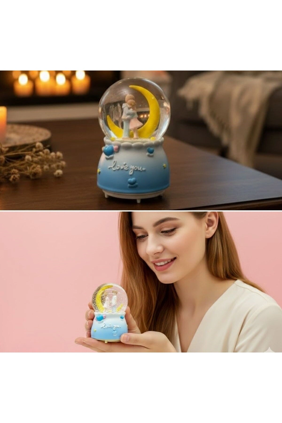 Pilli Işıklı Müzikli Kar Küresi – Hilal Ay Figürlü Romantik Masaüstü Biblo Pilli Işıklı Müzikli Kar Küresi, hilal ay figürü ve romantik tasarımıyla yaşam alanlarınıza büyülü bir atmosfer kazandırır.; LED aydınlatması ve müzik özelliği sayesinde hem görsel hem de duygusal bir deneyim sunan bu özel kar küresi; ev, ofis, vitrin ve masaüstü dekorasyonu için ideal bir tamamlayıcıdır.; Işığı açıldığında kar tanelerinin ay figürü etrafında süzülmesi, loş ortamlarda şık ve huzur verici bir görünüm oluşturur.; Müzik özelliğiyle birlikte romantik anlara eşlik ederken, sevdiklerinize hediye edebileceğiniz anlamlı ve estetik bir alternatif sunar.; Sevgililer Günü, doğum günü, yıl dönümü ve özel günler için zarif bir hediyedir.; Pilli yapısı sayesinde kabloya ihtiyaç duymadan dilediğiniz her alanda kolayca kullanılabilir.; Kutu içerisinden çıkan piller ile ürünü hemen kullanmaya başlayabilirsiniz.; Öne Çıkan Özellikler ???? Hilal ay figürlü romantik tasarım ???? LED ışıklı aydınlatma ???? Müzik çalma özelliği ???? Pilli kullanım (kablo gerektirmez) ???? Ev, ofis ve masaüstü dekorasyonuna uygun ???? Şık ve anlamlı hediyelik ürün Kutu İçeriği 1 adet Işıklı Müzikli Kar Küresi 2 adet pil Kullanım Alanları Masaüstü & raf dekoru Vitrin süsü Romantik ortam aydınlatması Sevgiliye ve özel günlere hediyelik
