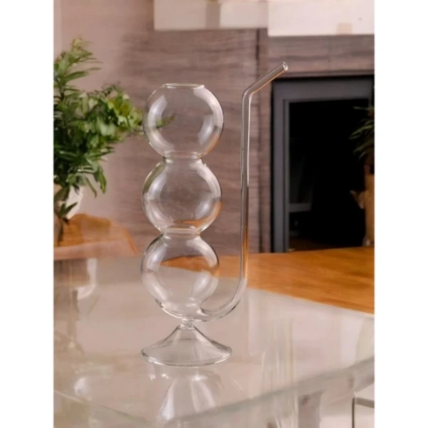 PİPETLİ BOĞUMLU CAM BARDAKÜrün ÖzellikleriEstetik ve sıra dışı tasarımıyla dikkat çeken pipetli boğumlu cam bardak, içecek sunumlarına şıklık ve eğlence katmak isteyenler için ideal bir üründür. Üç adet bombeli boğumdan oluşan gövdesi ve entegre cam pipeti ile farklı bir içim deneyimi sunar. Soğuk içecekler, kokteyller, aromalı içecekler ve meyve suları için kullanıma uygundur. Cam malzemeden üretilmiştir ve şeffaf yapısı sayesinde içeceğin rengi şık bir şekilde sergilenir. Özel davetlerde, pikniklerde veya günlük kullanımlarda fark yaratır. El yapımı havası ve özgün formuyla dikkat çeker.Paket İçeriği1 Adet Pipetli Boğumlu Cam Bardak